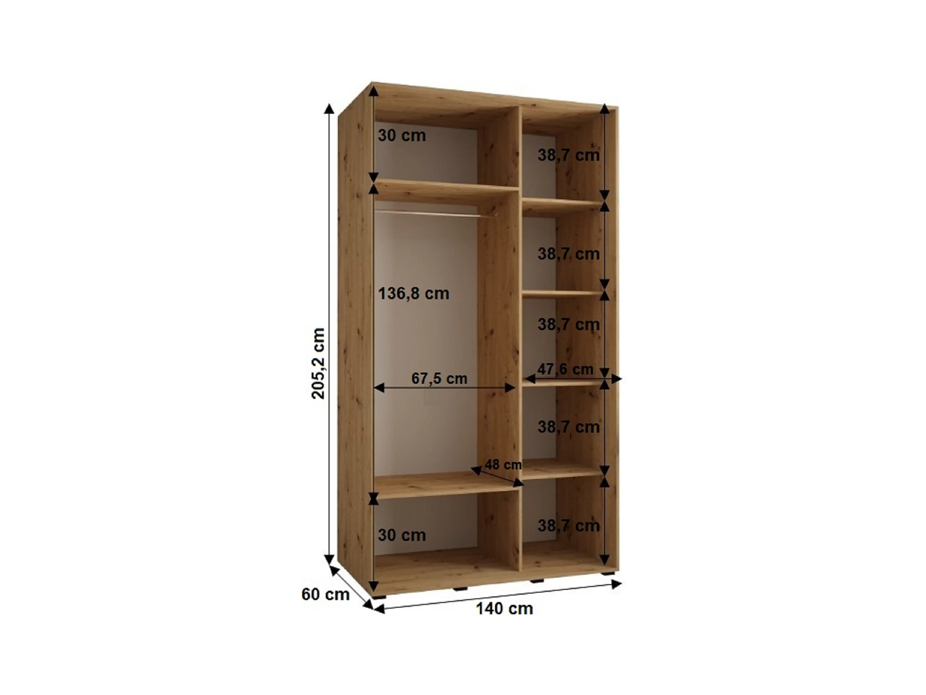 SCHWEBETÜRENSCHRANK SAPPORO 1 205,2/140/60 2-türig (Schwarz/Artisan)