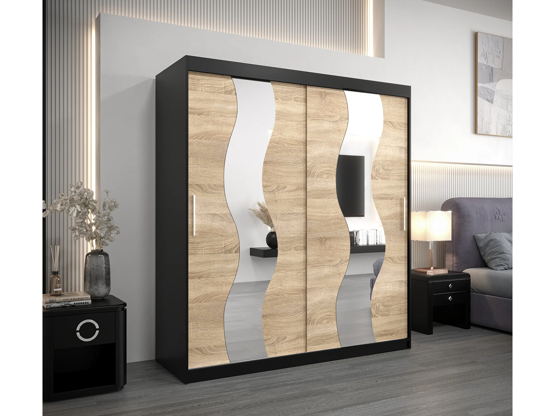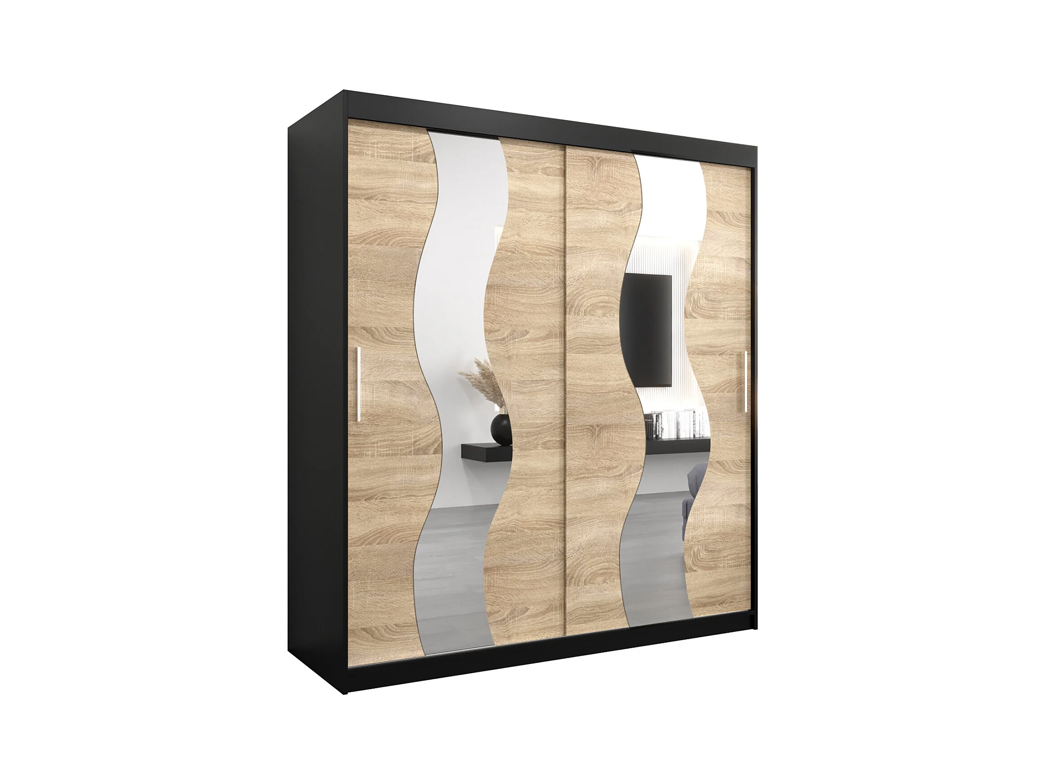 Schwebetürenschrank Sewilla 200/180/62 2-Türig (Schwarz/Sonoma)