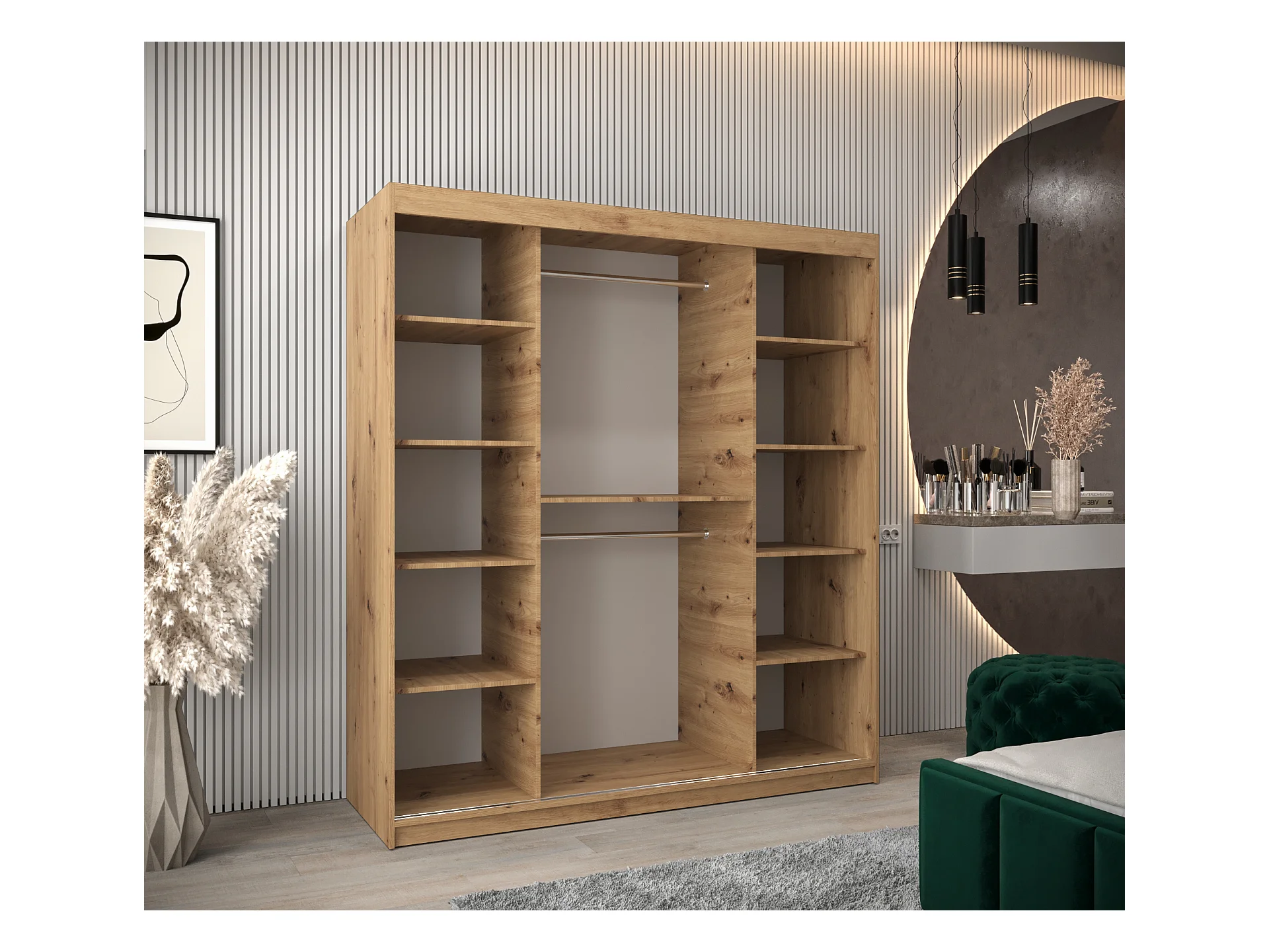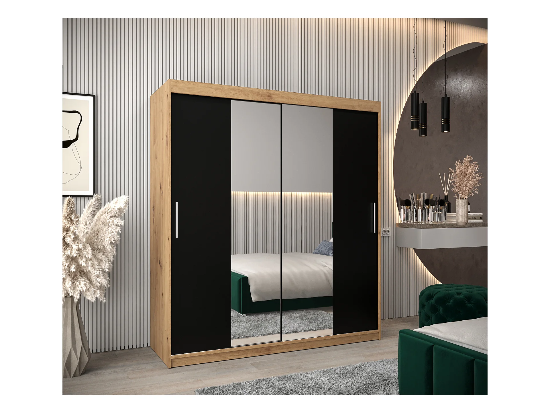 Schwebetürenschrank Tokyo 1 200/180/62 2-Türig (Artisan/Schwarz)