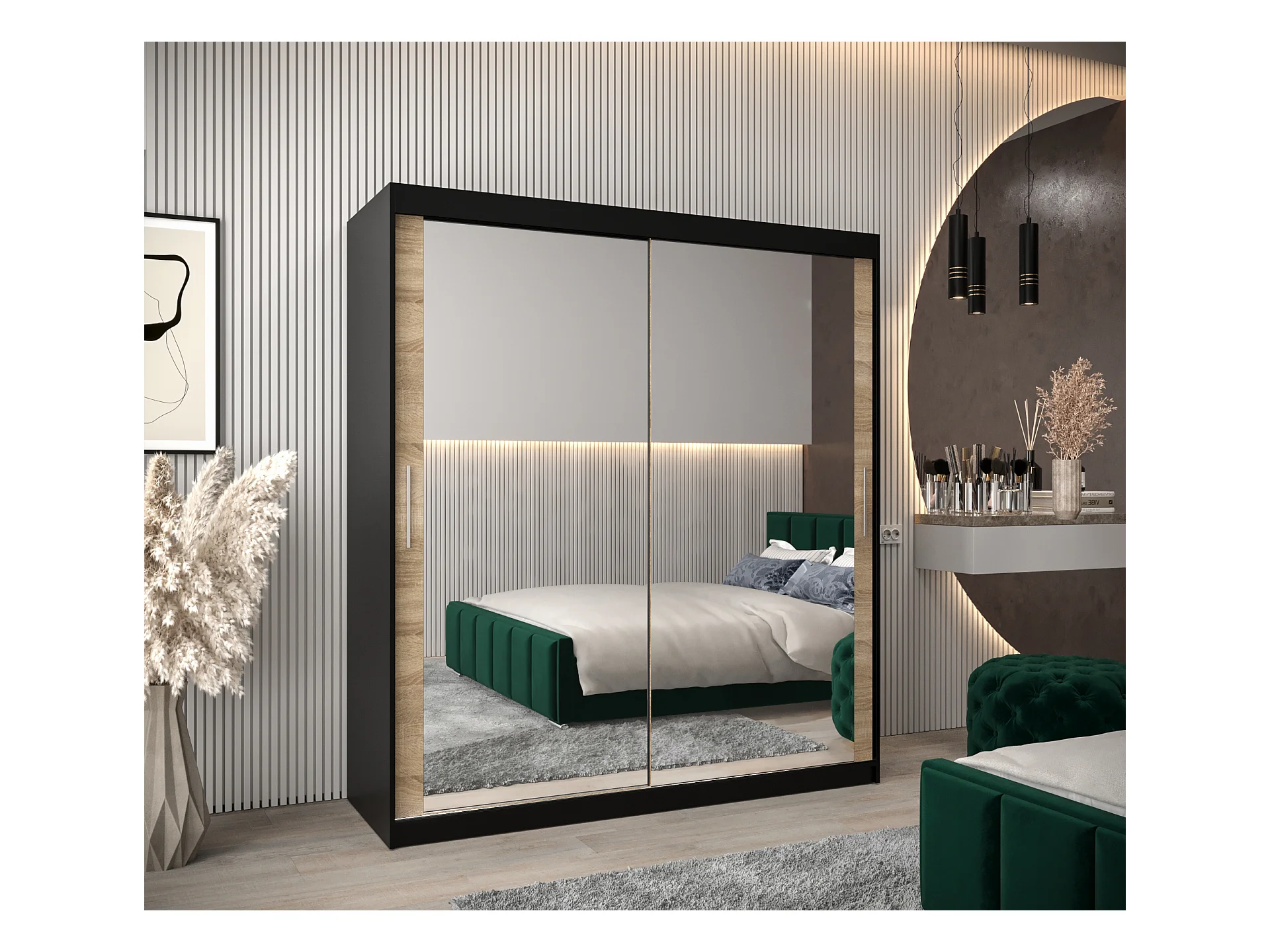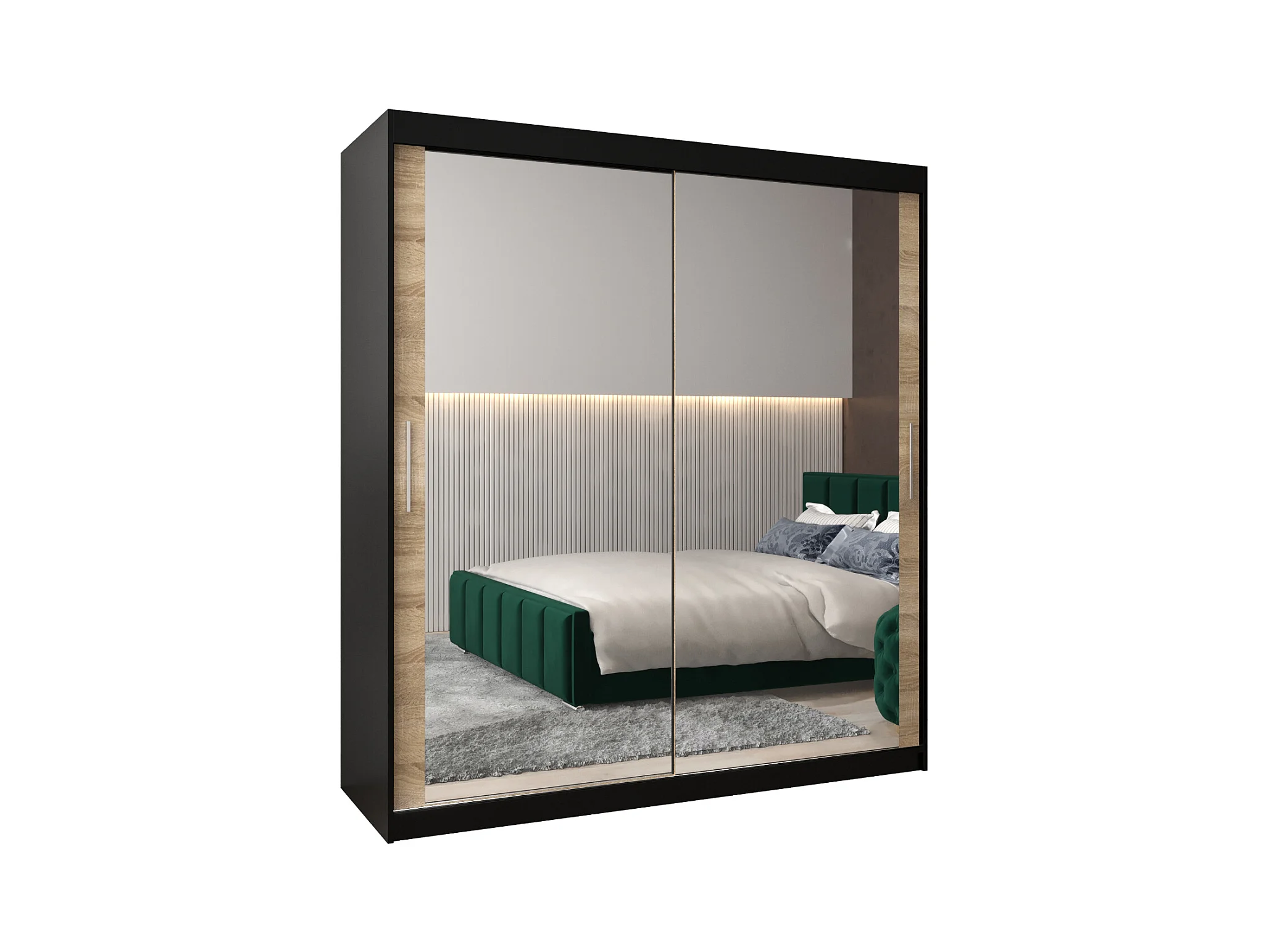 Schwebetürenschrank Tokyo 3 200/180/62 2-Türig (Schwarz/Sonoma)