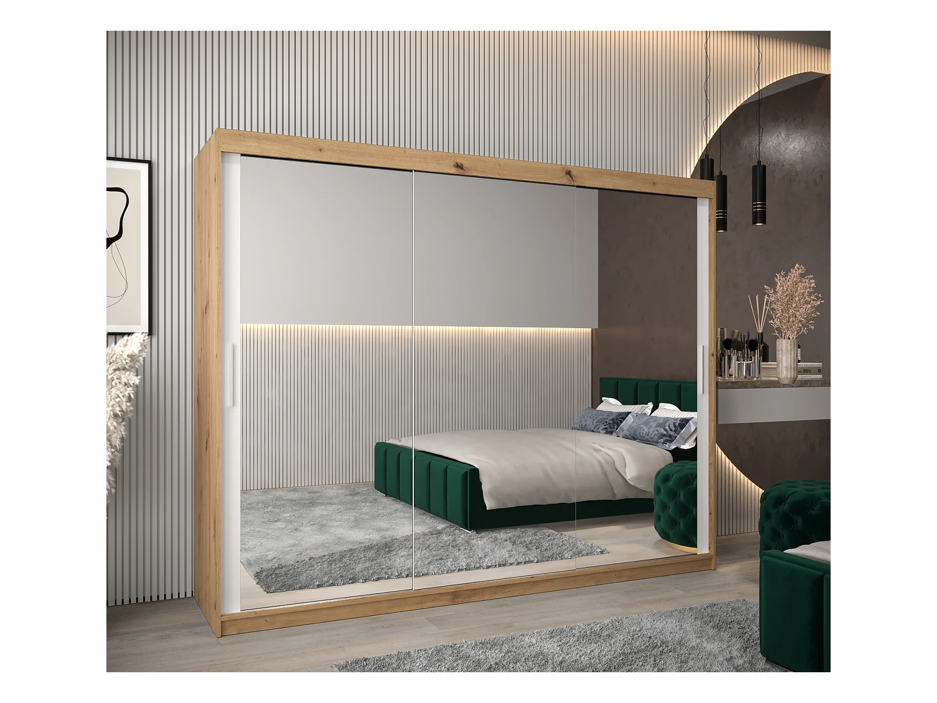 Schwebetürenschrank Tokyo 3 200/250/62 2-Türig (Artisan/Weiß)