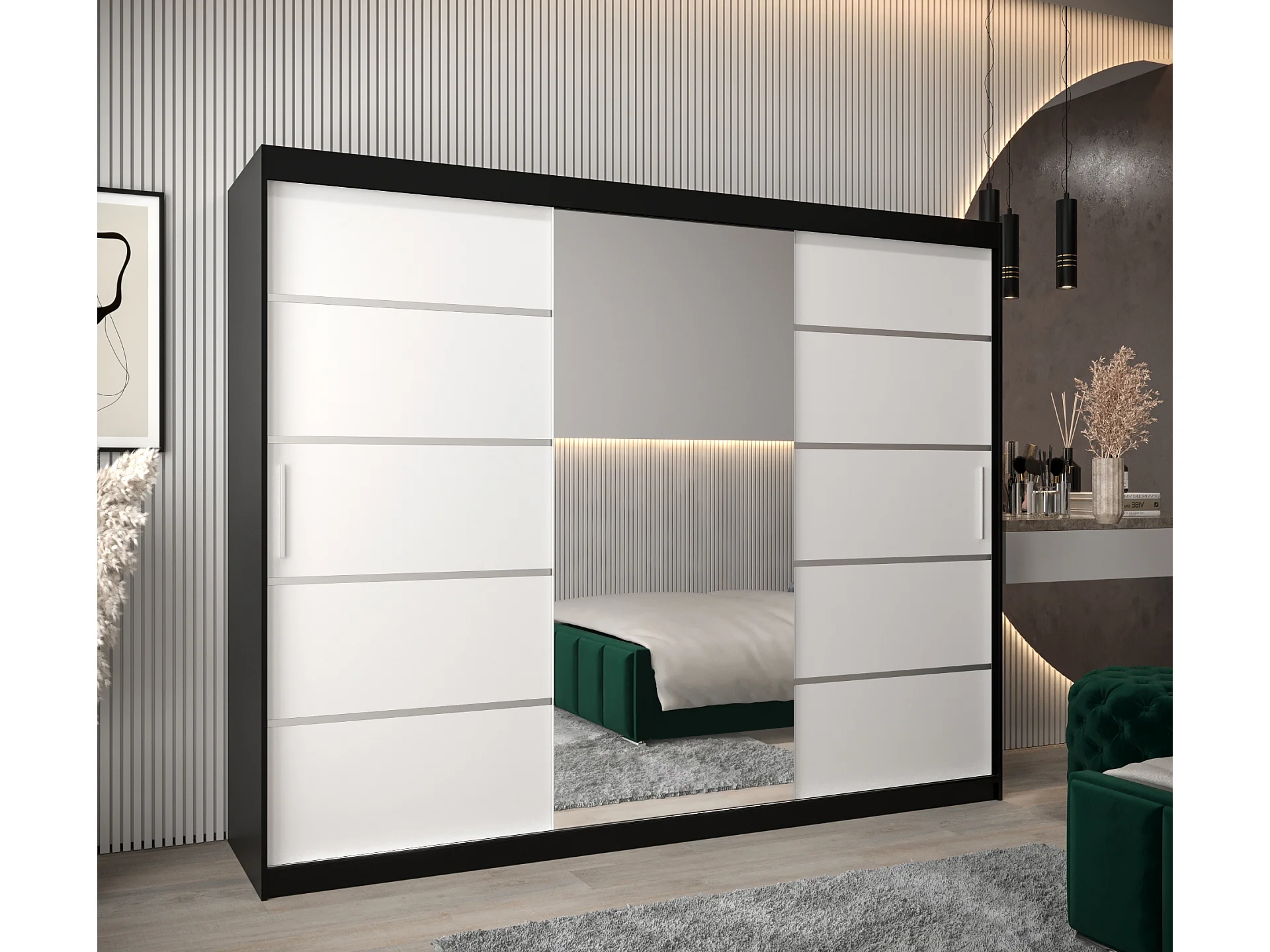 SCHWEBETÜRENSCHRANK VERONA 2 200/250/62 3-türig (Schwarz/Weiß)