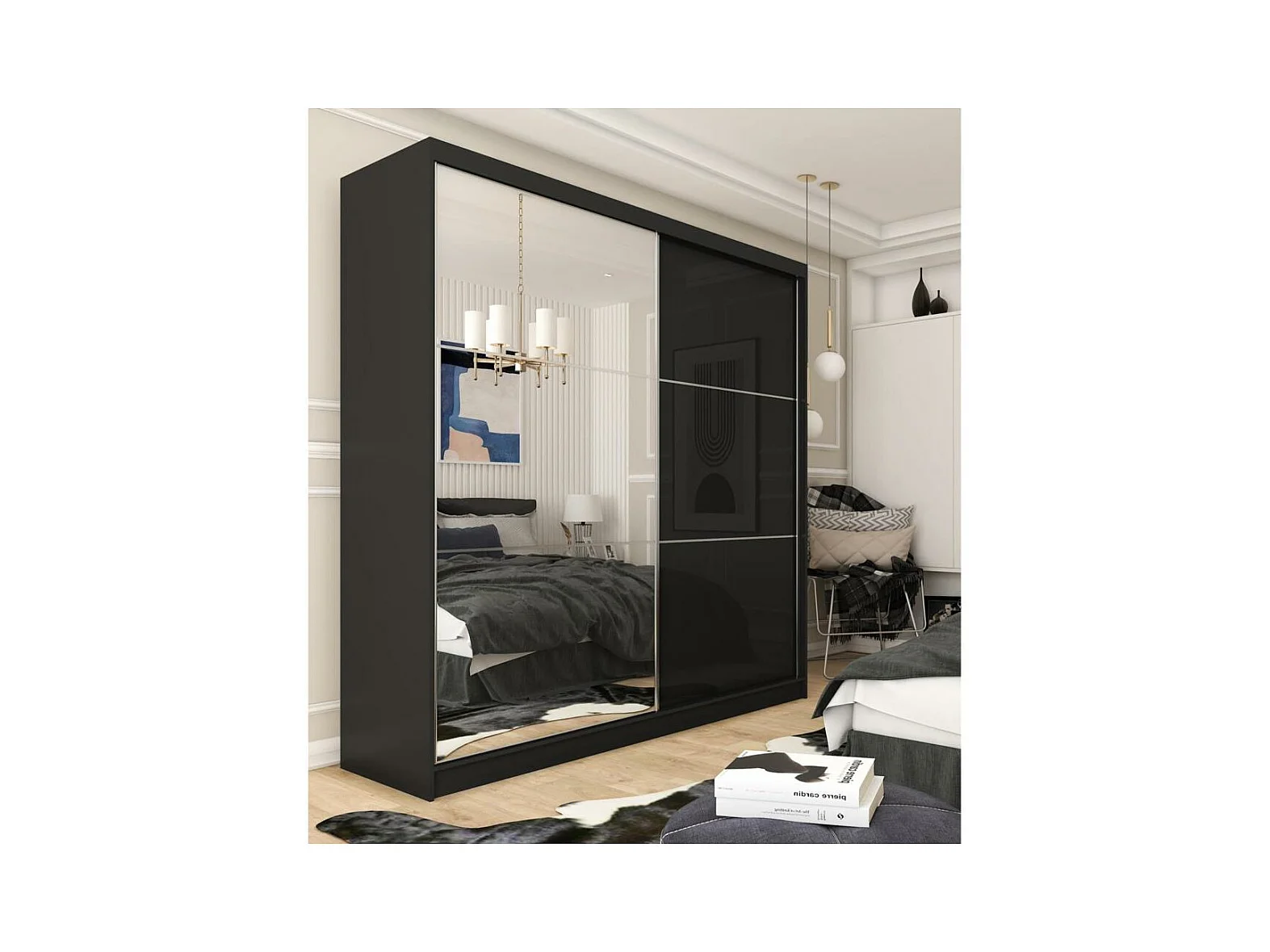 SCHWEBETÜRENSCHRANK Viva 200/216/61 schwarz mit Spiegel und Schubladeneinsätze