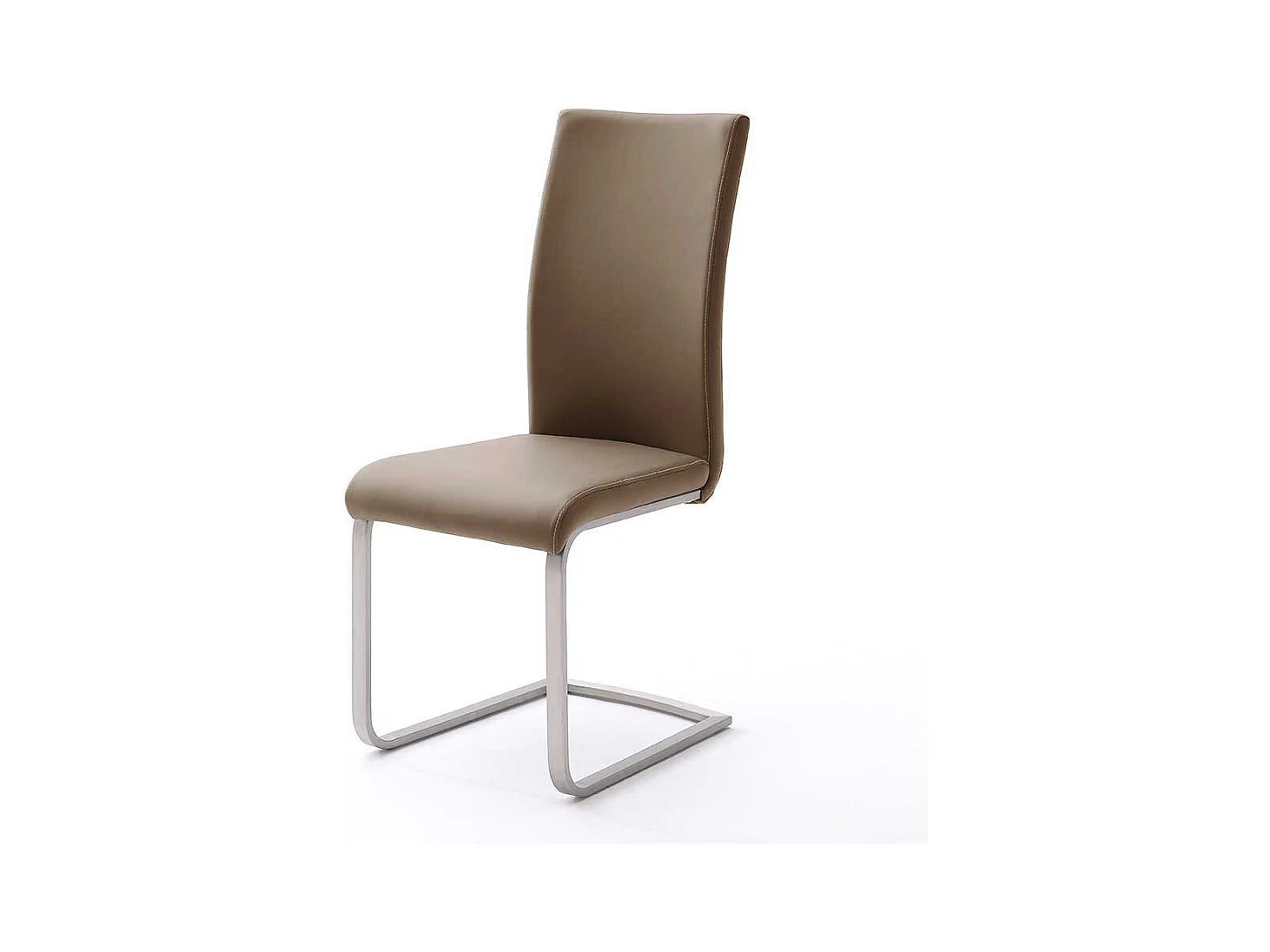 Schwingstuhl in Hellbraun Kunstleder Edelstahl (4er Set)