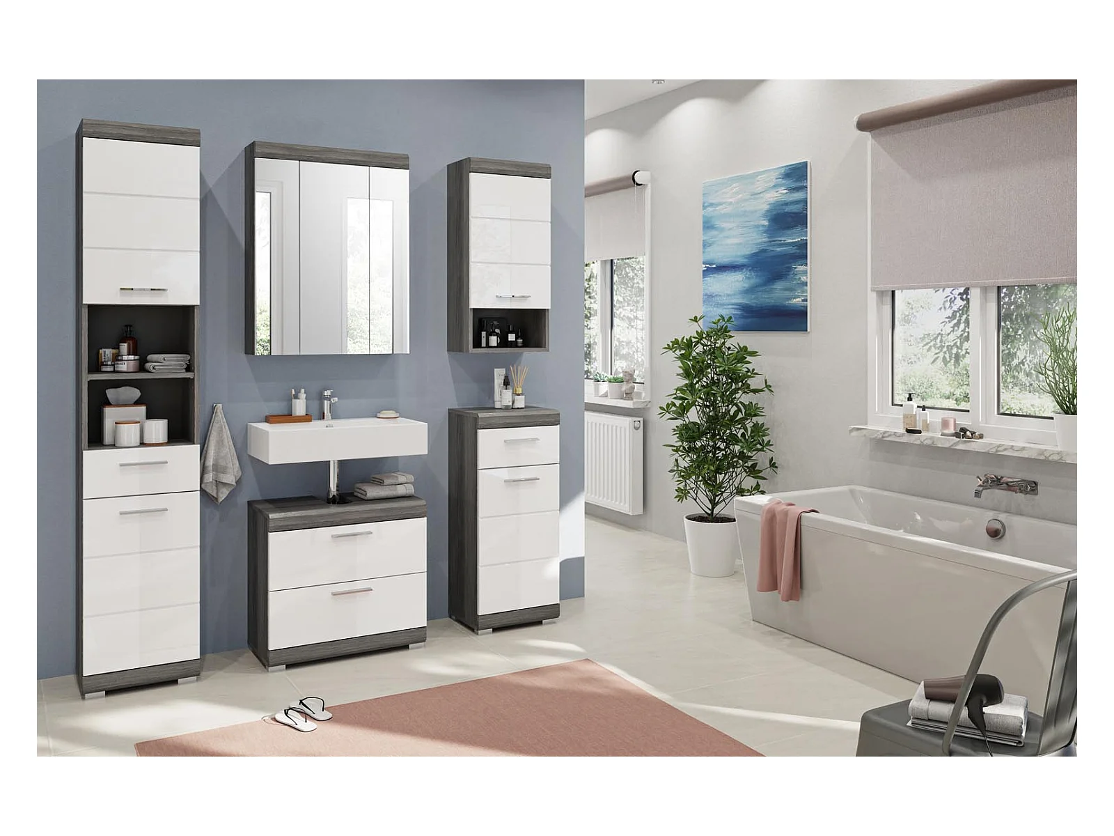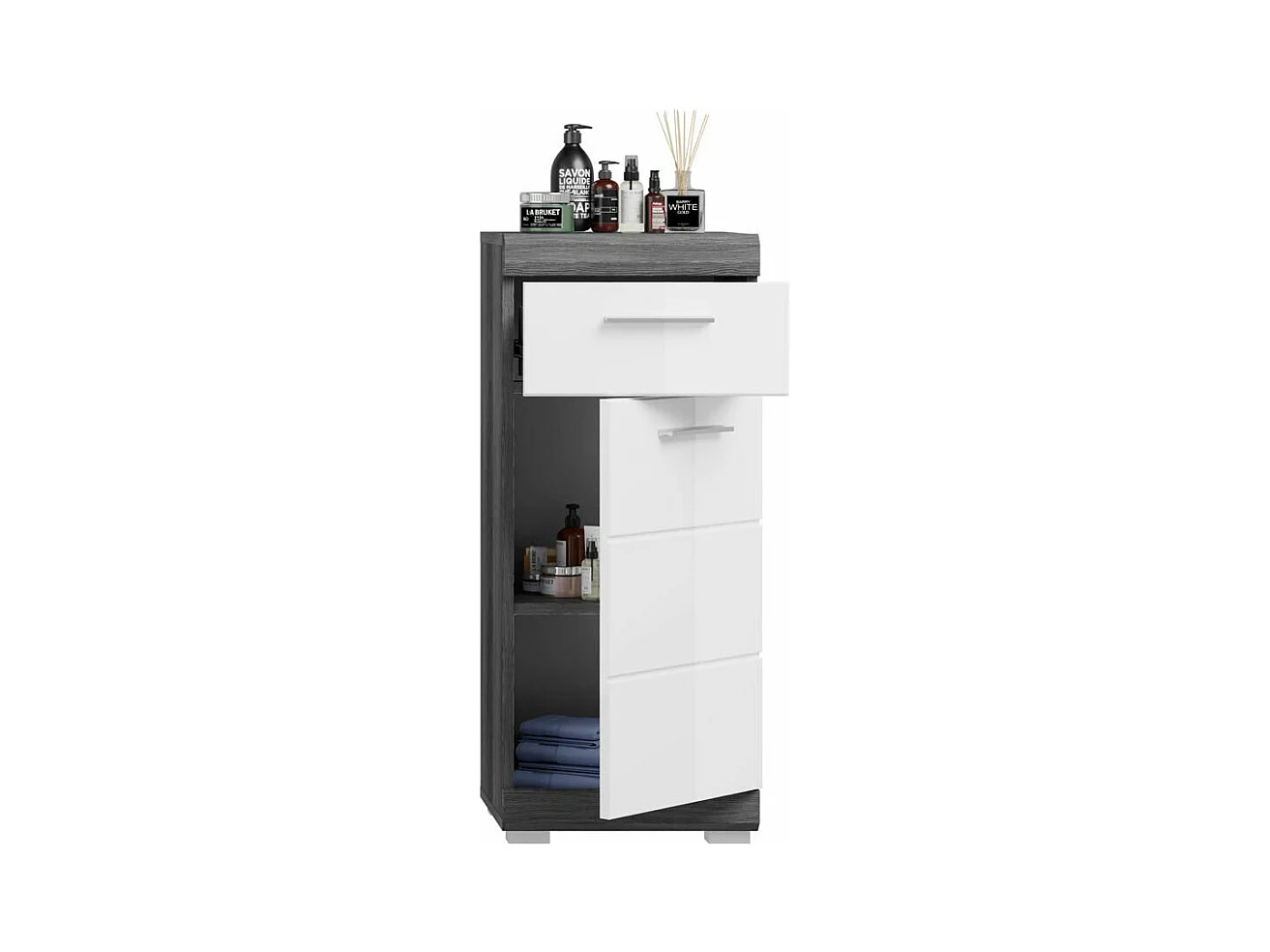 Scout Badschrank 1 Tür, 1 Schublade Hochglanz weiß,rauchfarbenen.