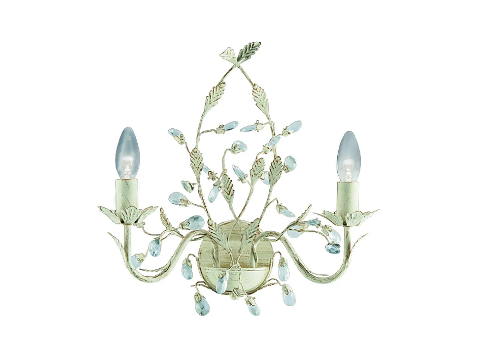 Searchlicht Almandite - 2 Licht Innenkerze Wandleuchte Gold, Creme mit Kristallen Blumenblätter Design, E14