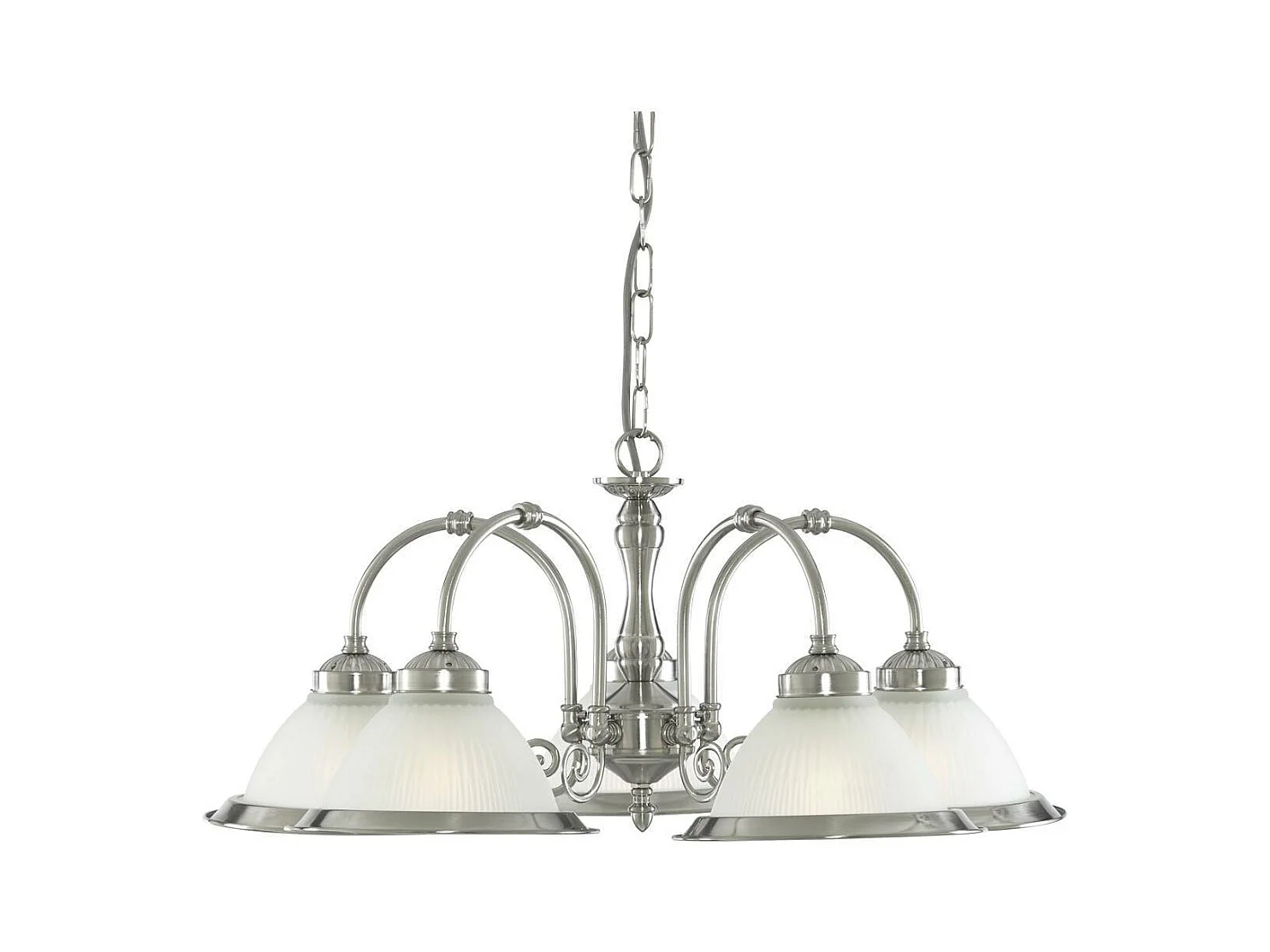 Searchlicht American Diner - 5 licht Multi Arm Multi Arm Deckenanhänger Satin Silber, Acid Ribbed Glass, E27