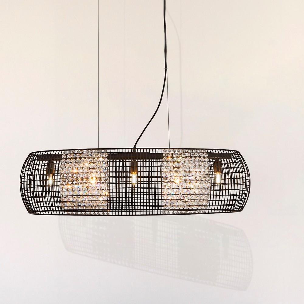 Searchlicht CAGE - 5 Hellschwarzer ovaler Deckenanhänger mit Kristallglasscheiben