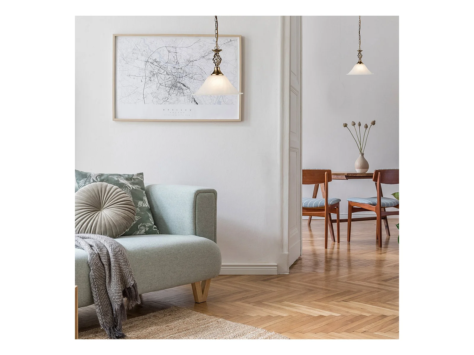 Searchlicht Cameroon - 1 licht Dome Deckenanhänger Antik Messing, Marmorglas, E27
