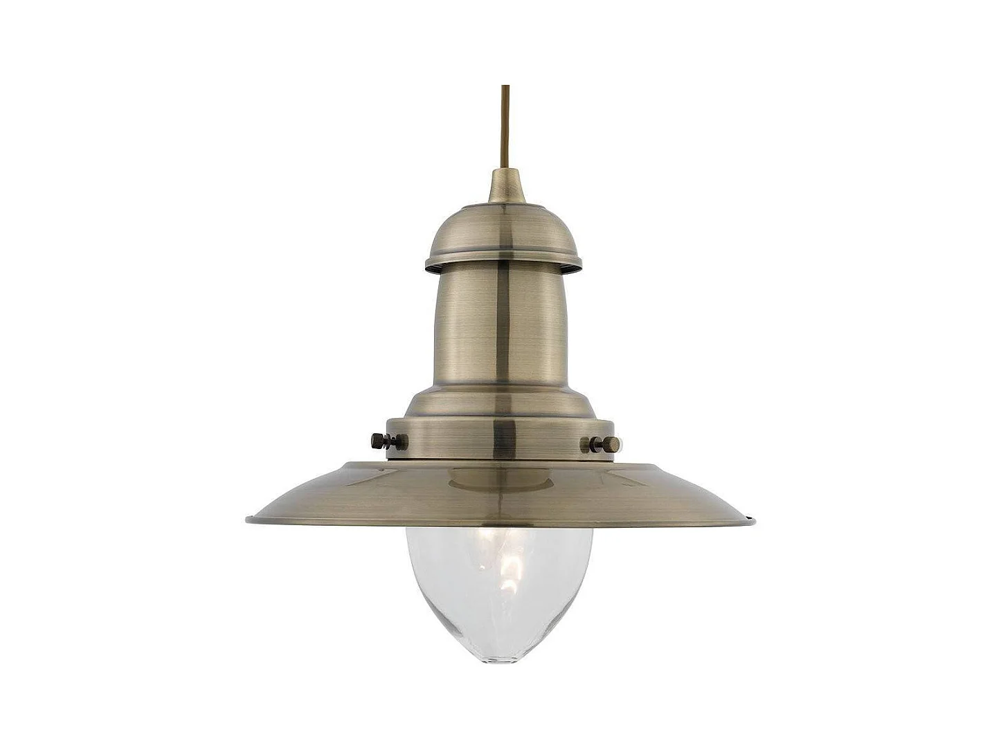 Searchlicht Fisherman - 1 licht Dome Deckenanhänger Antik Messing, Klarglas Medium, E27
