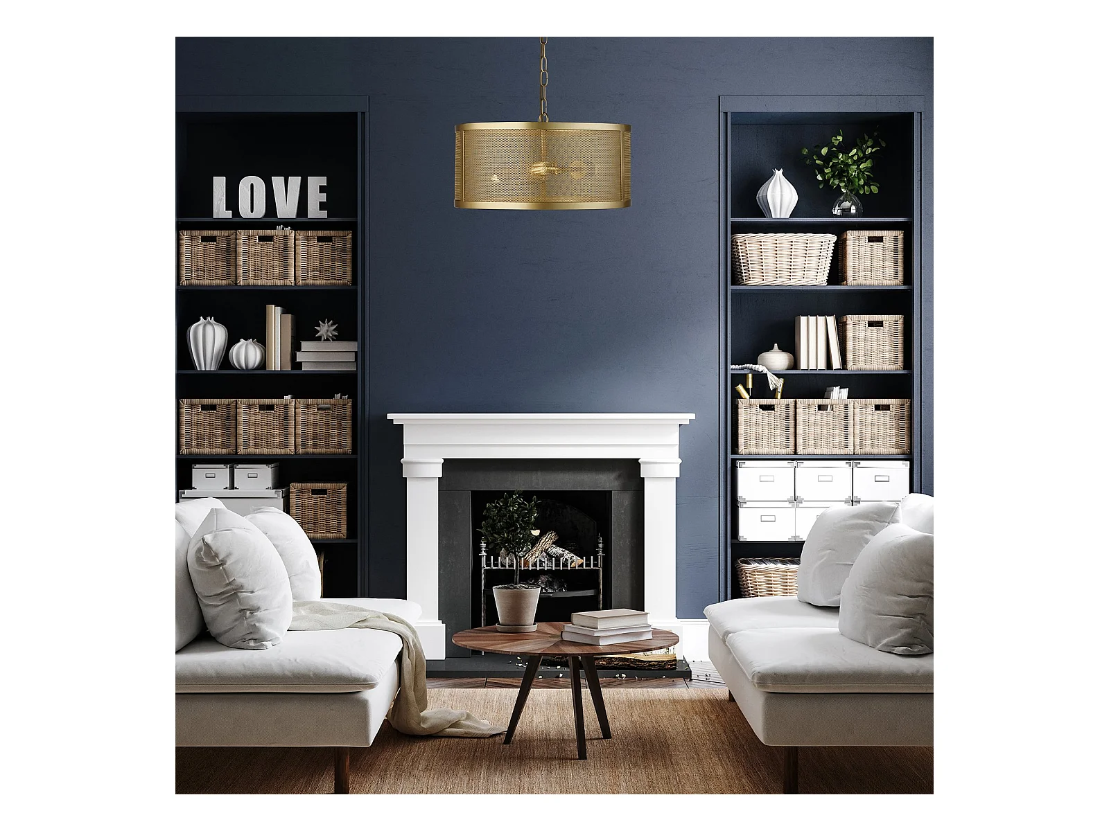 Searchlicht Fishnet - 3 leichte zylindrische Anhänger Mesh Matt Gold, E27