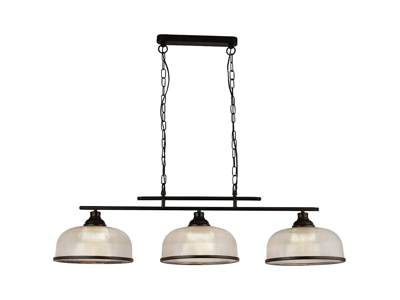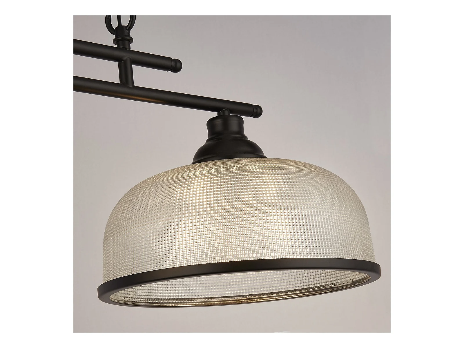 Searchlicht Highworth 3-Licht-Bar-Anhänger, schwarz, Glas im Holophan-Stil