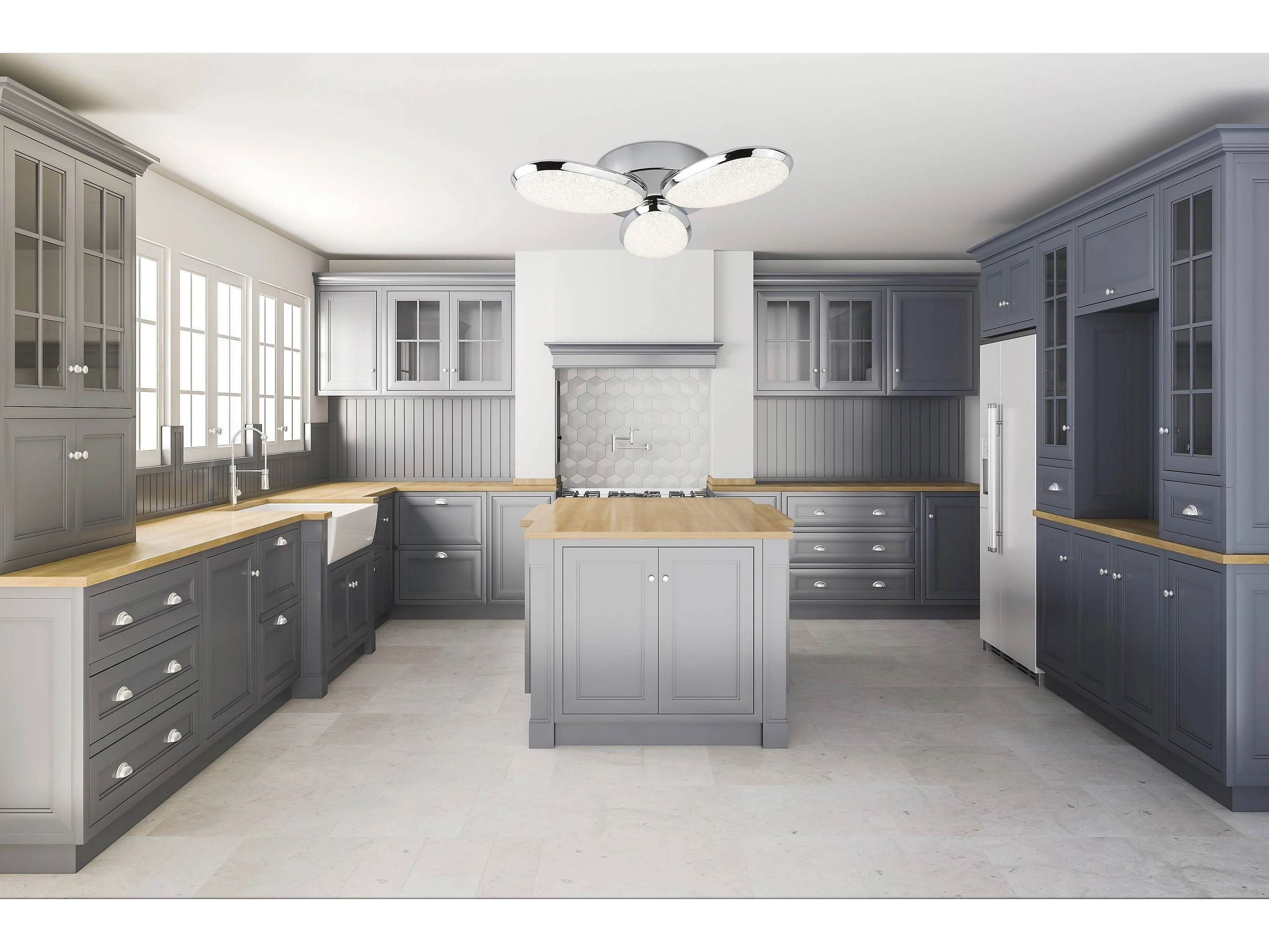 Searchlicht Lori - Integrierte LED Flush Multi Arm Deckenleuchte Chrom, Weiß