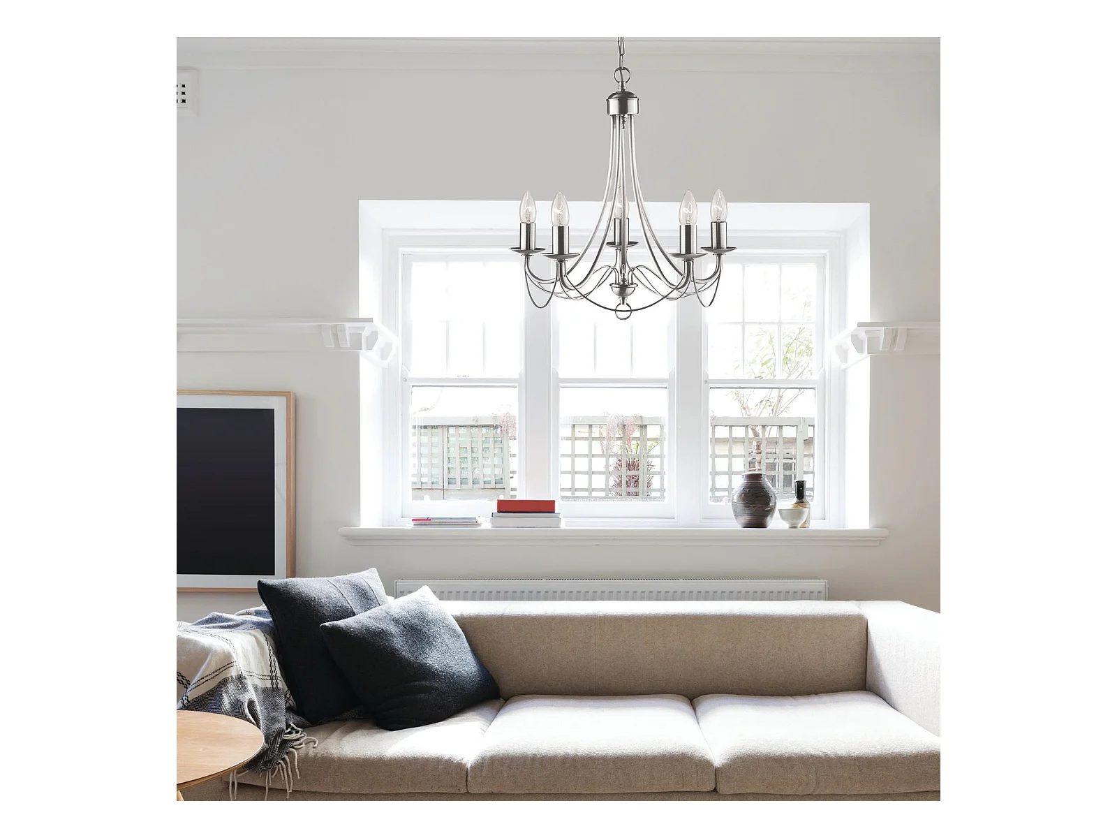 Searchlicht Maypole - 5 leichte mehrarmige Deckenanhänger Satin Silber, E14