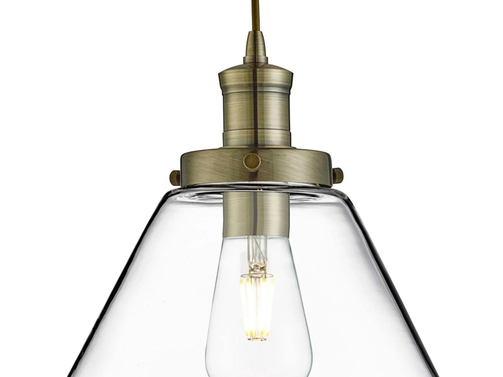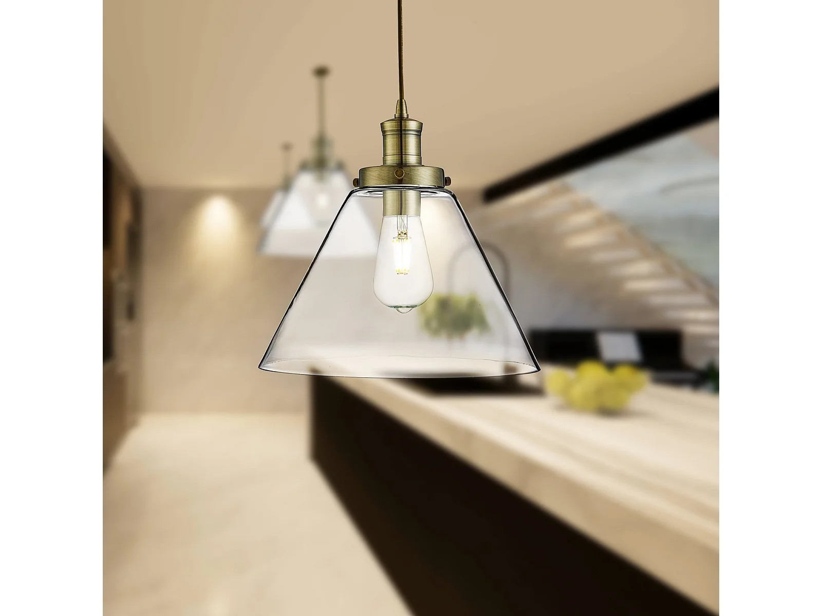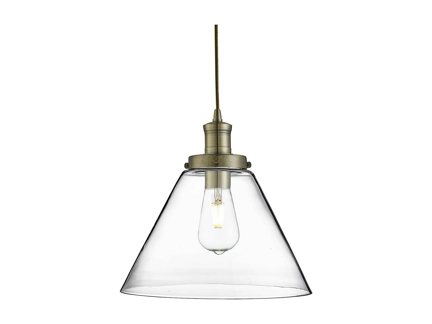 Searchlicht Pyramid - 1 licht Dome Deckenanhänger Antik Messing mit Klarglasschirm, E27