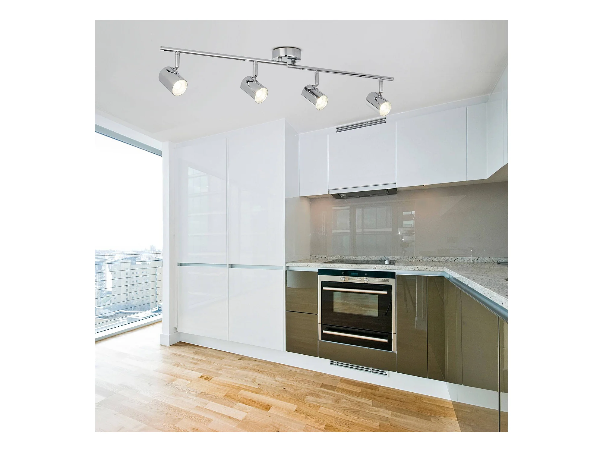 Searchlicht Rollo - Integrierte LED 4 licht Strahler Bar Chrom
