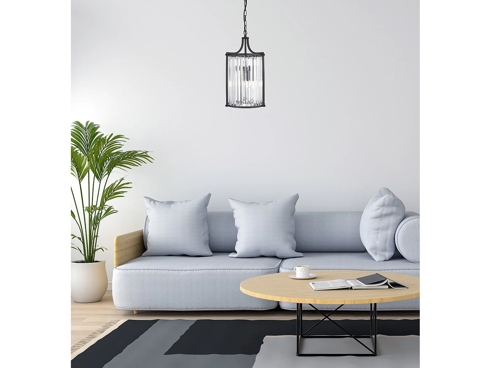 Searchlicht Victoria 2-flammige Pendelleuchte, Mattschwarz, Kristallglas