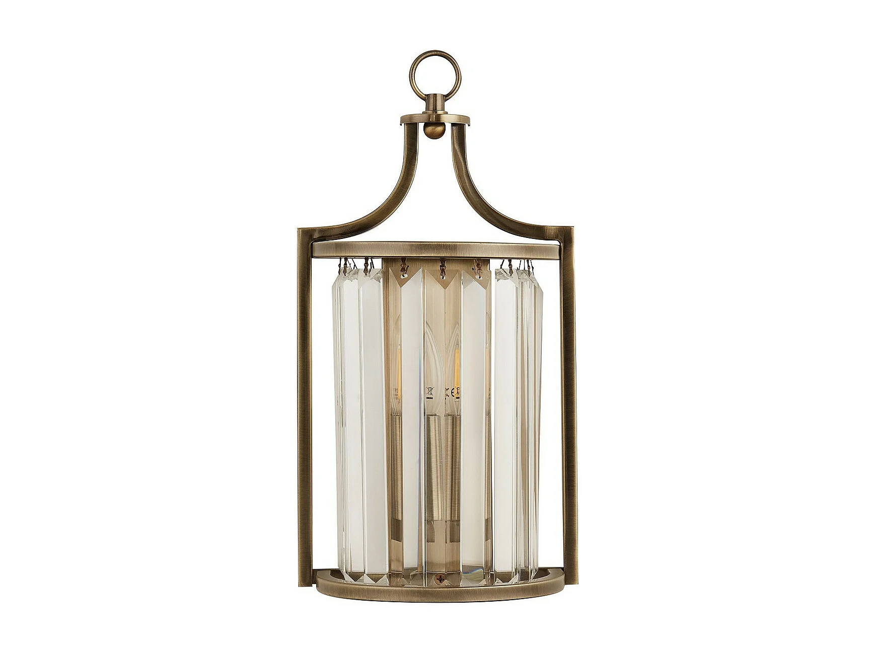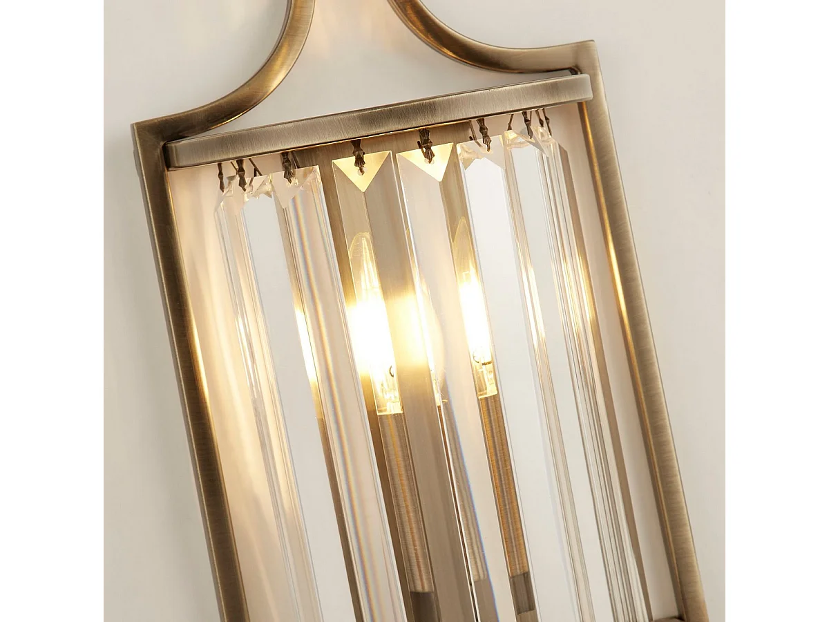 Searchlicht Victoria Wandleuchte aus antikem Messing, klares Kristall