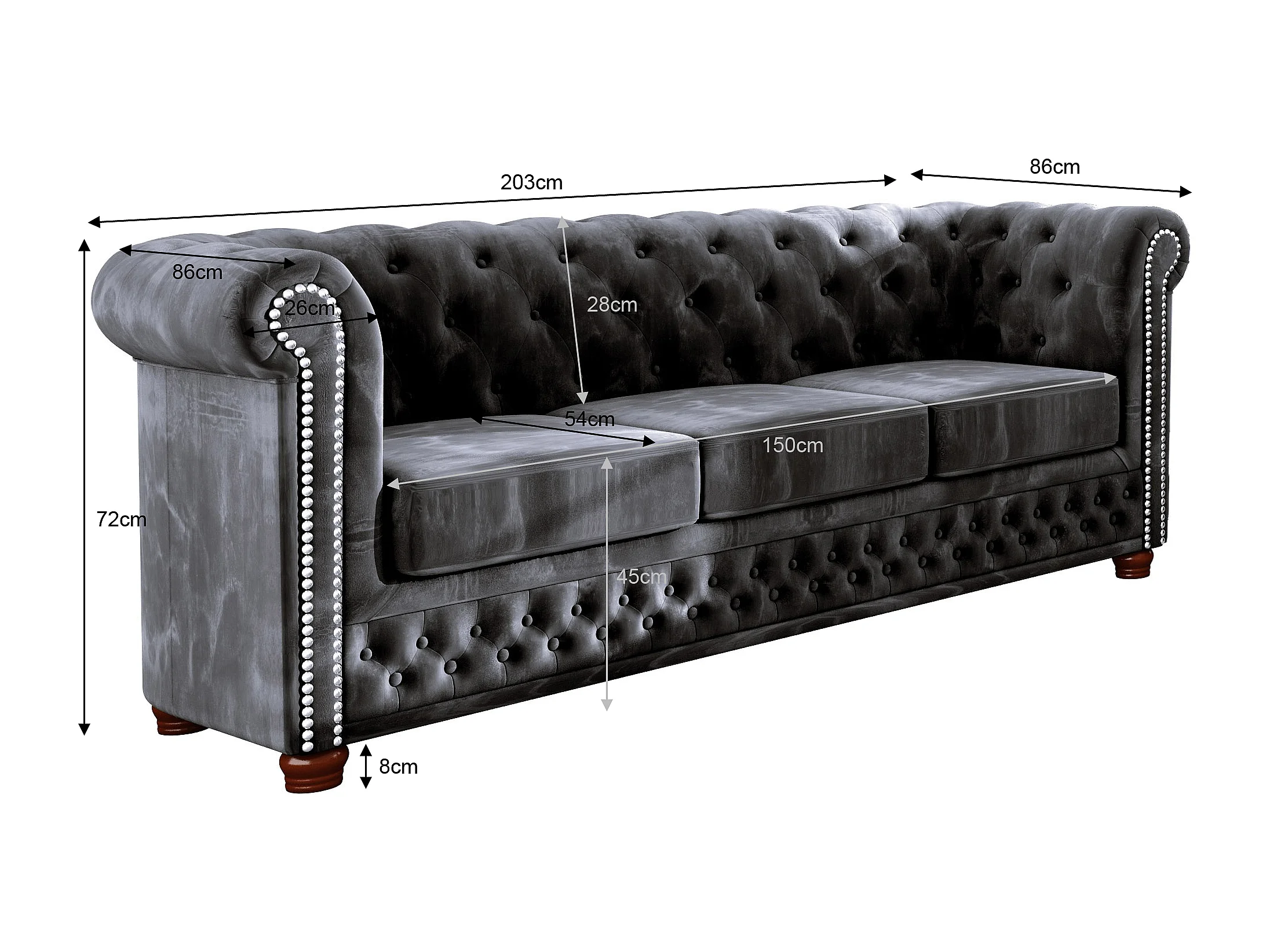 Sebastian 3-Sitzer Chesterfield Sofa