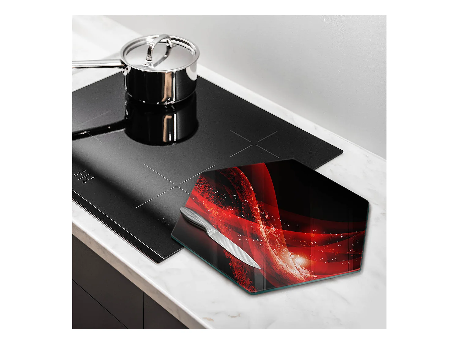 Sechseckiges Küchenbrett aus Glas, 40 cm Moderne Abstraktion