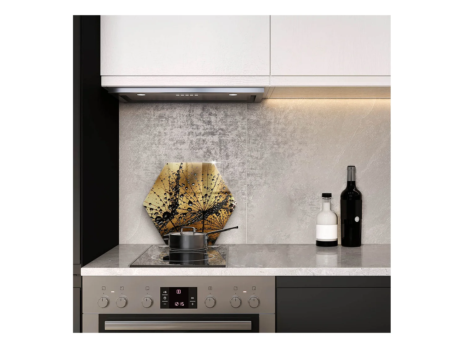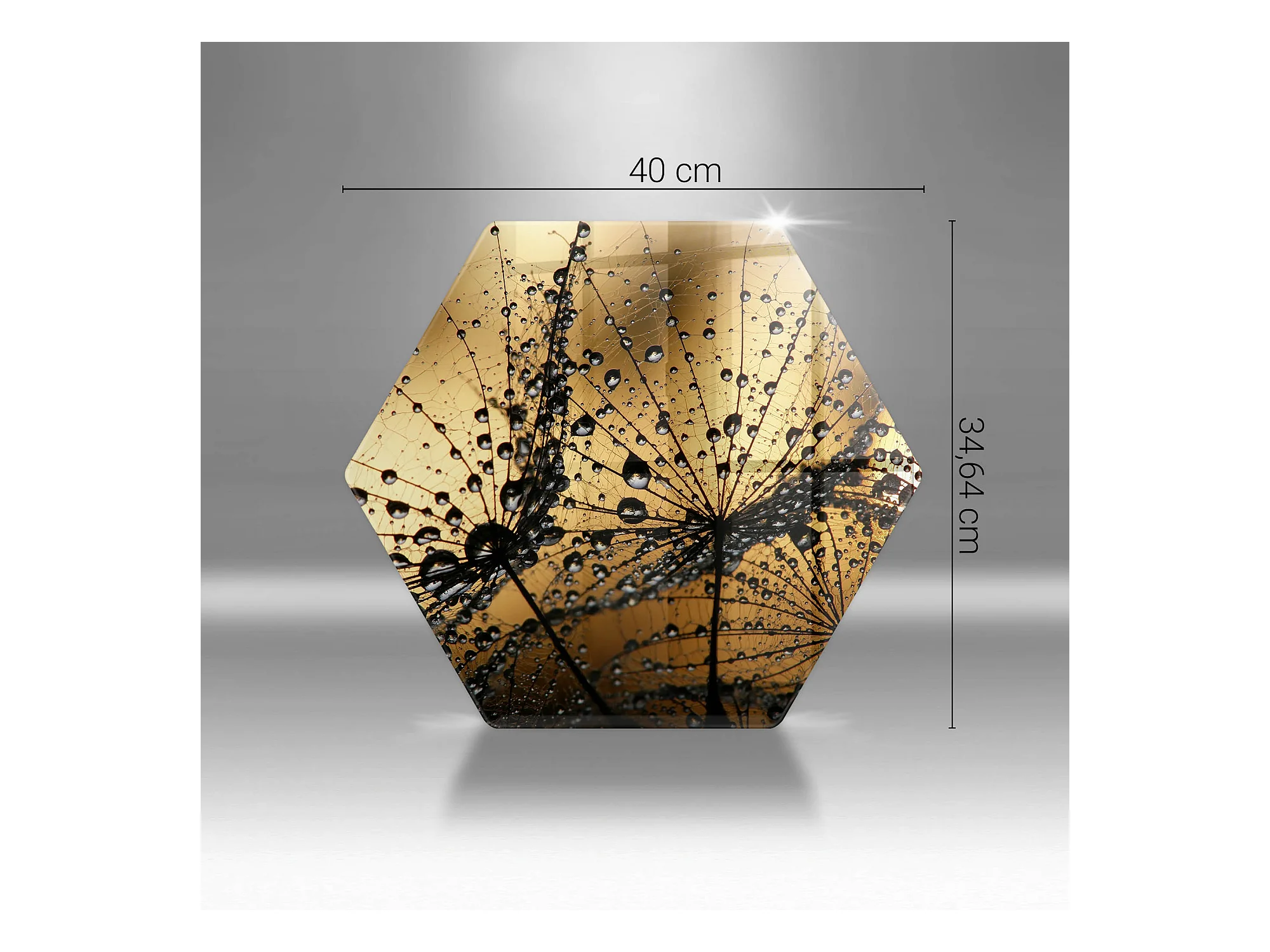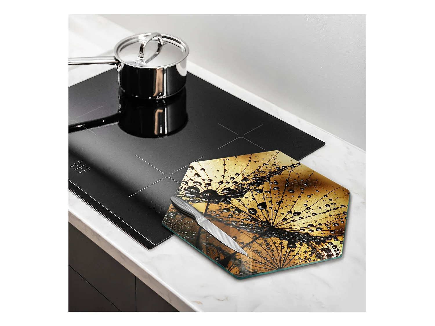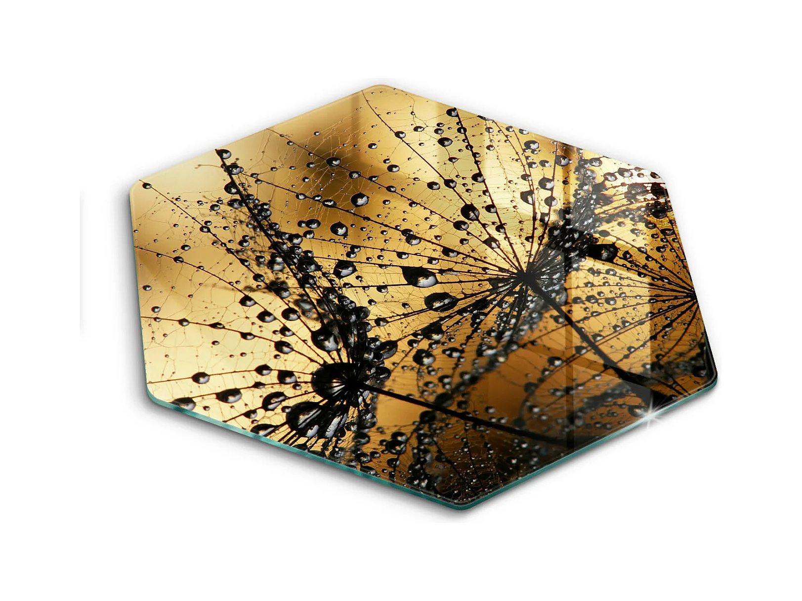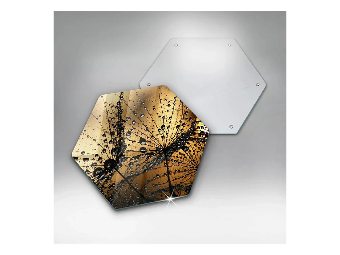 Sechseckiges Küchenbrett aus Glas, 40 cm Rosa und Löwenzahn