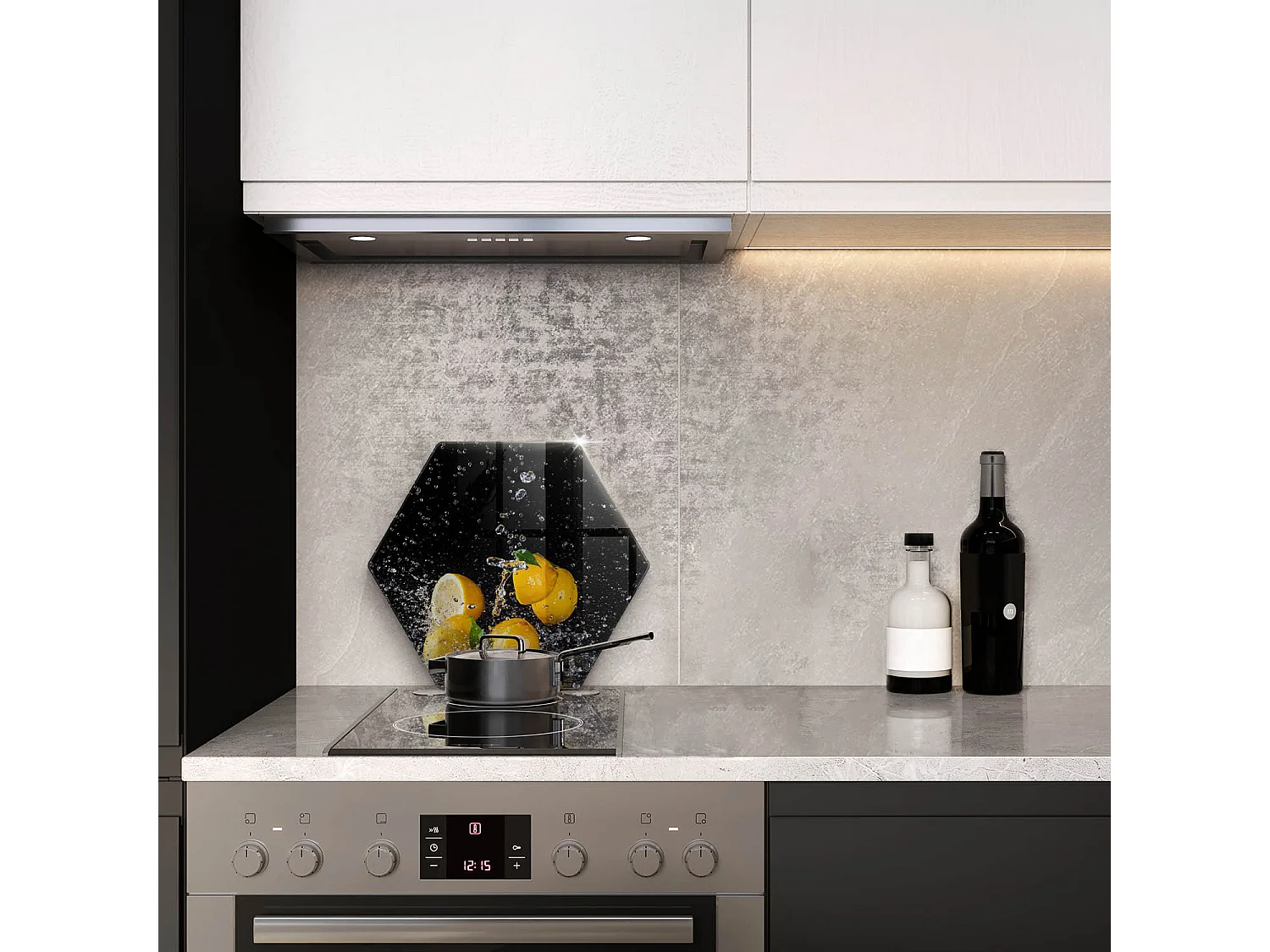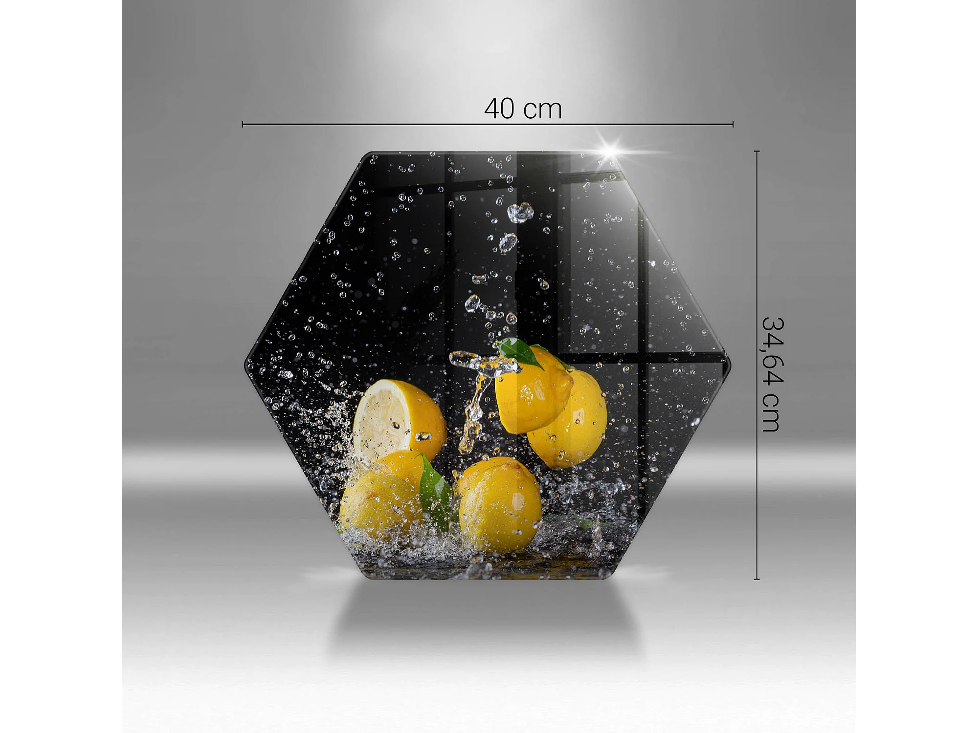Sechseckiges Küchenbrett aus Glas, 40 cm Saftige Zitrone