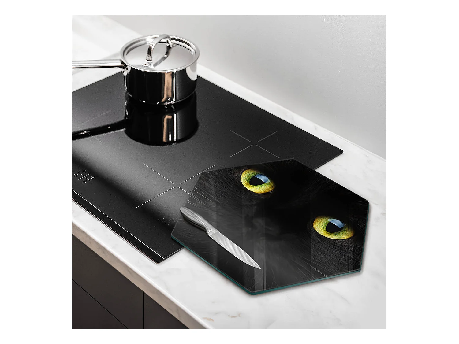 Sechseckiges Küchenbrett aus Glas, 40 cm Tier, Katzenaugen