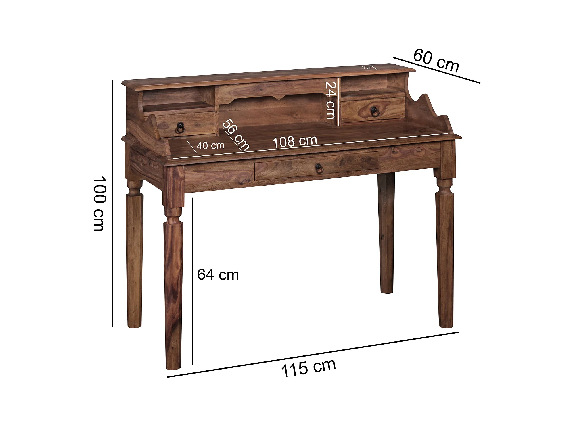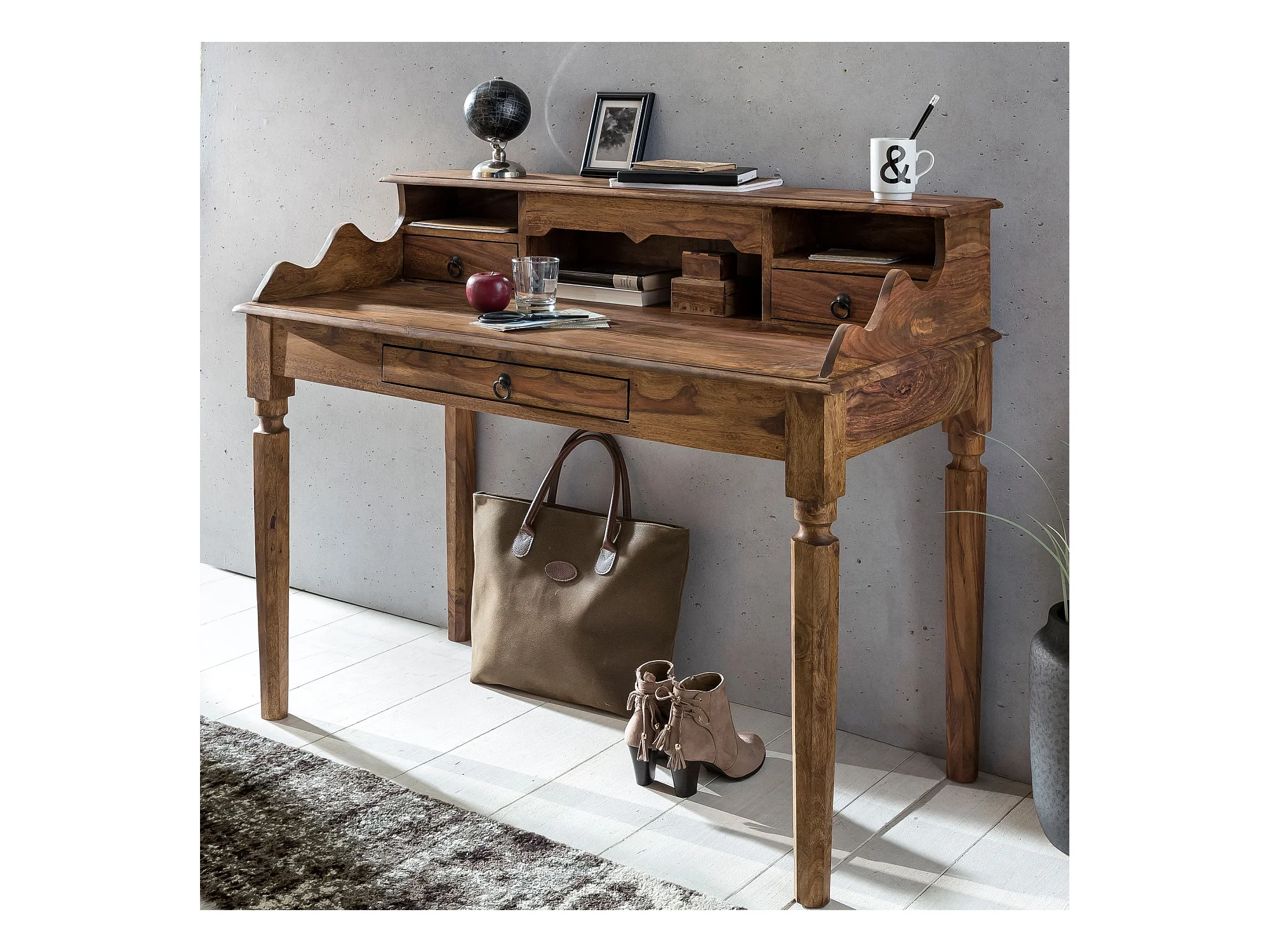 Sekretär Schreibtisch Holz Massiv Konsolentisch 115 cm mit Schubladen