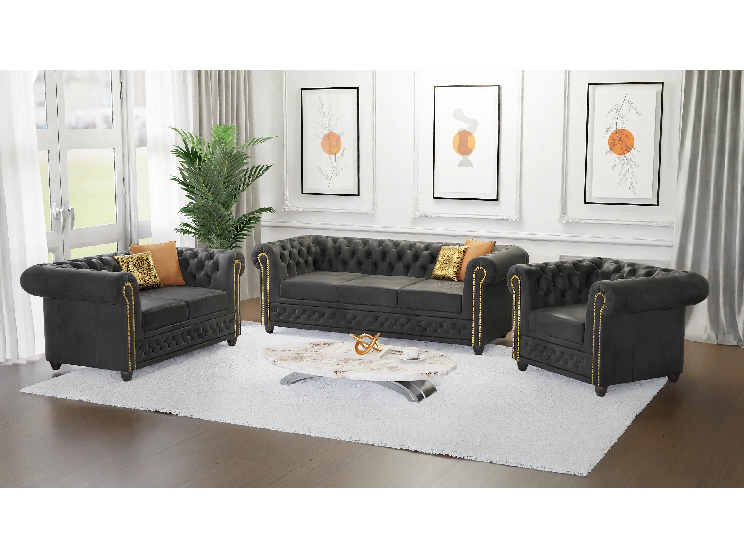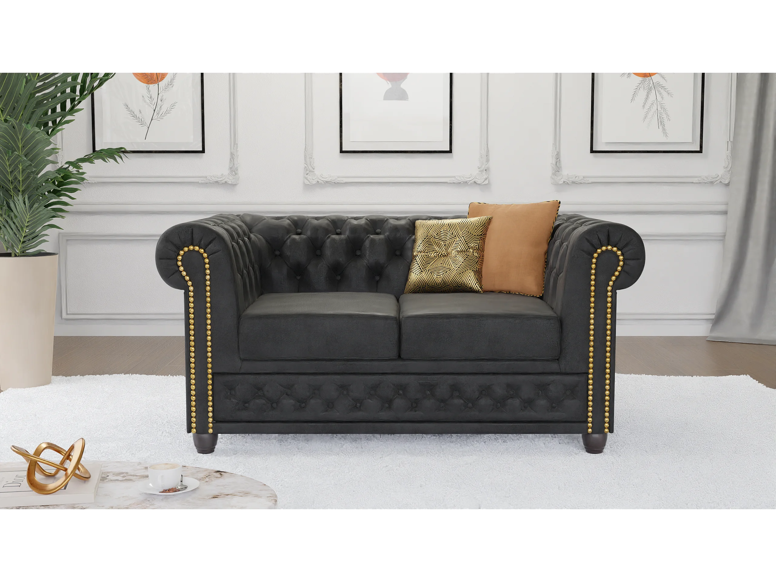 Selena 2-Sitzer Chesterfield Sofa mit Schlaffunktion Vintage Optik Microfaser