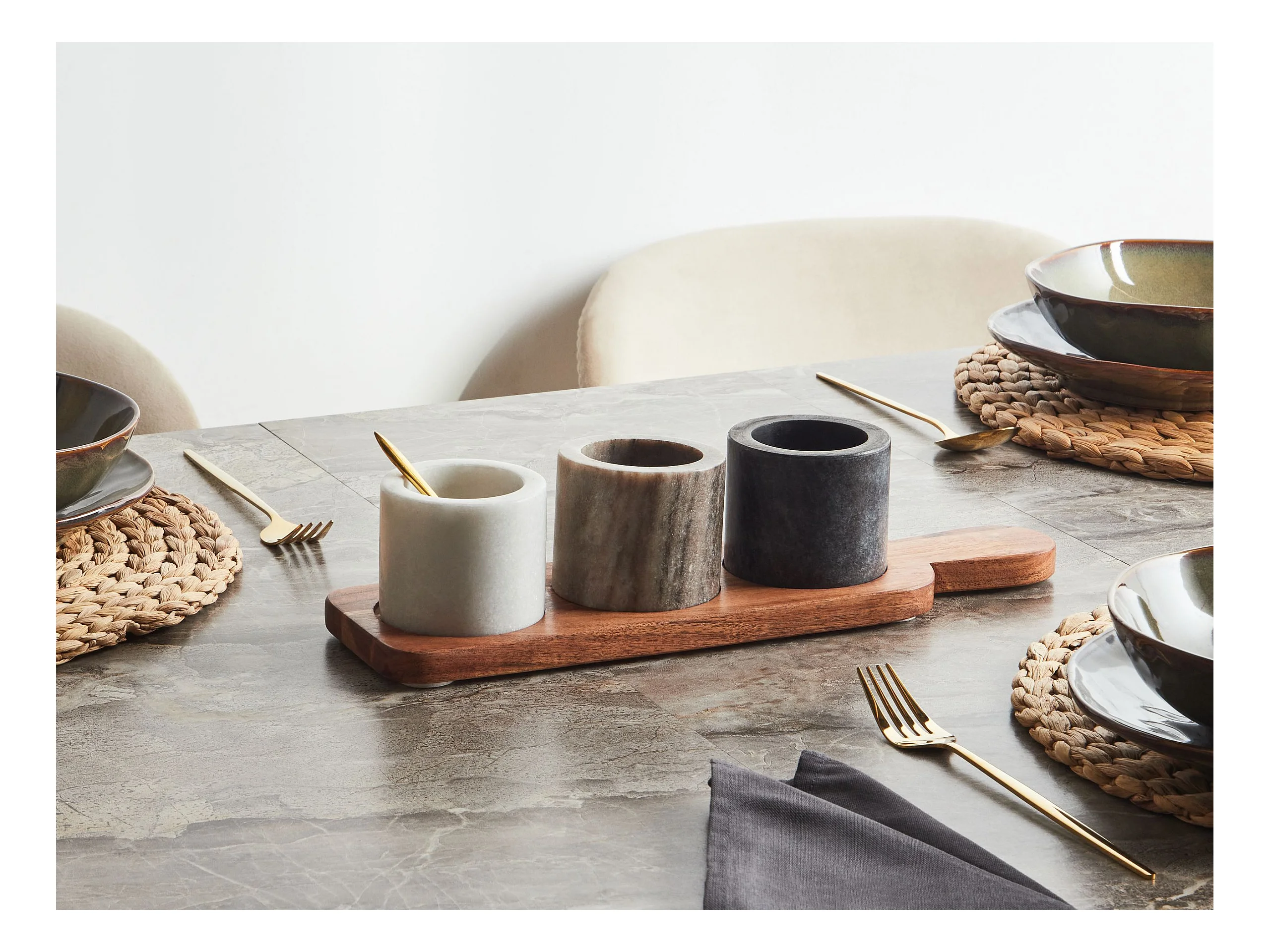 Servierbrett mit Schalen 3er Set PATRAS Stein Marmor Bunt
