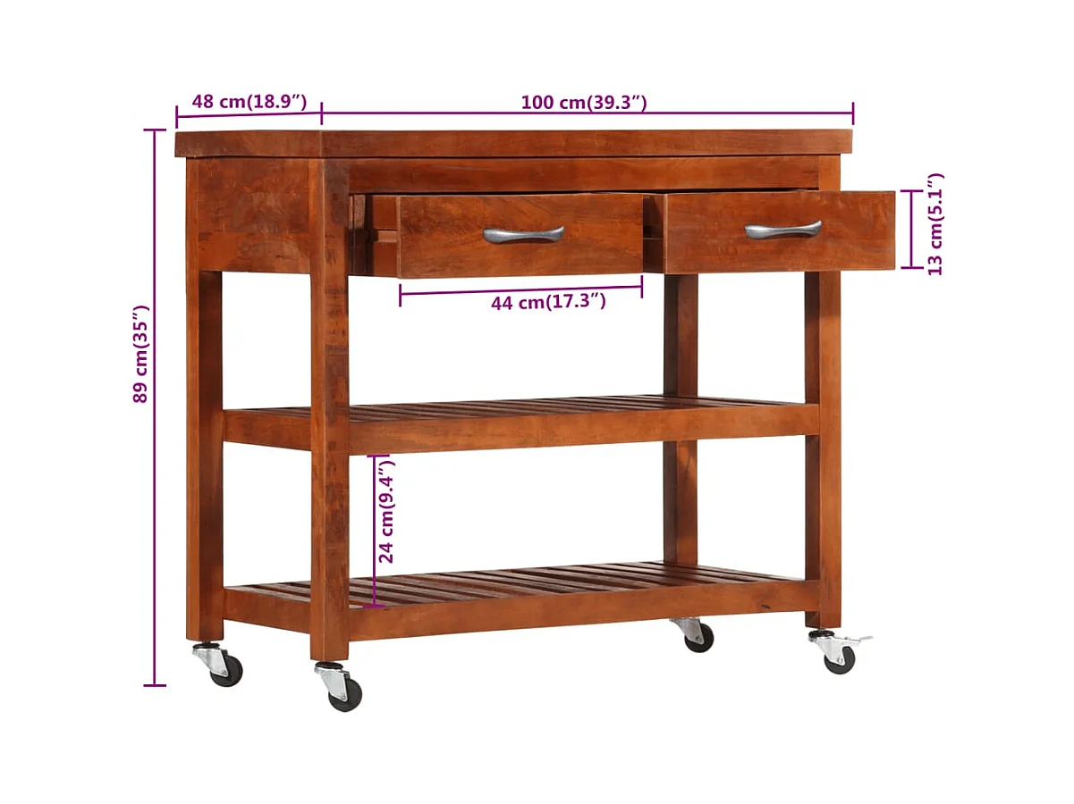 Servierwagen 100x48x89 cm Massivholz Akazie