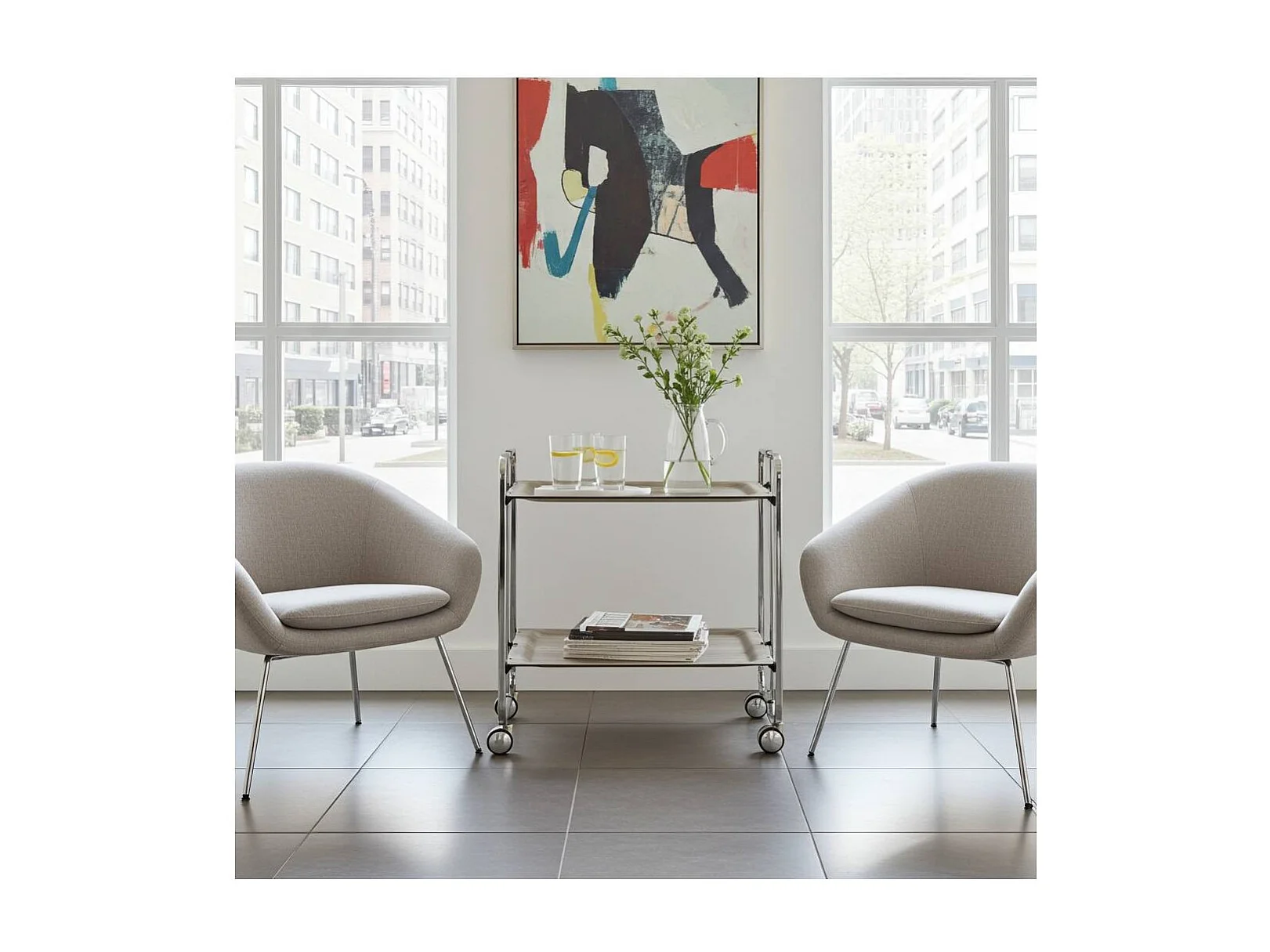 Klappbarer Servierwagen BAUHAUS mit Rollen – Metallgestell verchromt, 2 Ebenen, 4 Positionen
