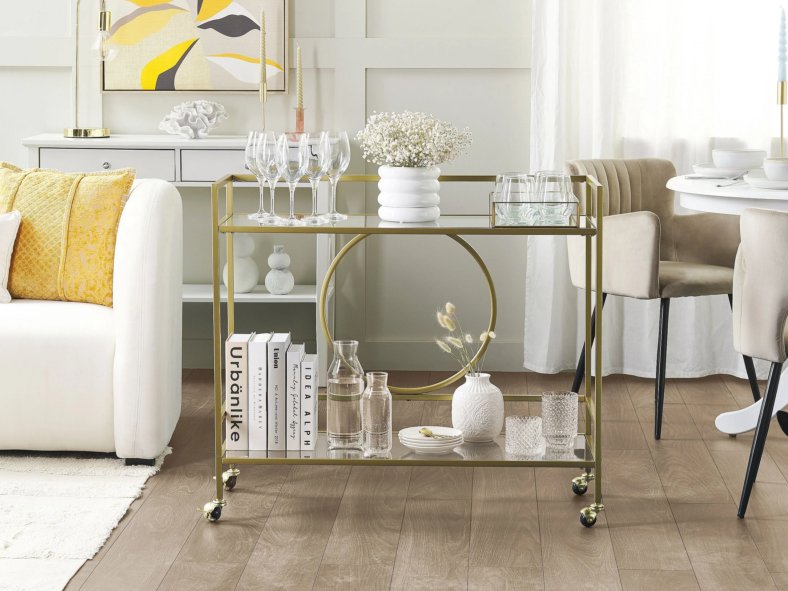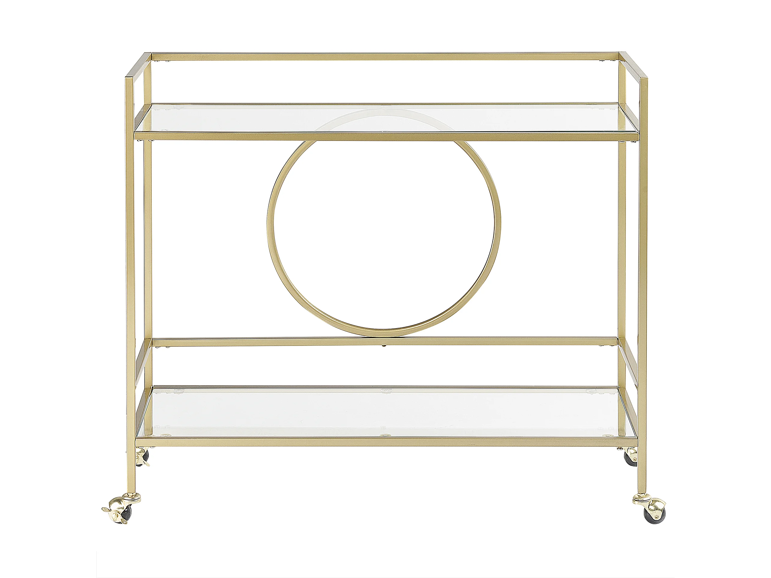 Servierwagen Glasplatte transparent / gold mit Rollen glamourös Kerry