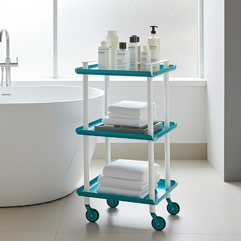 Servierwagen, Rollregal mit 3 Ebenen, Metall, weißer Rahmen, LEKY