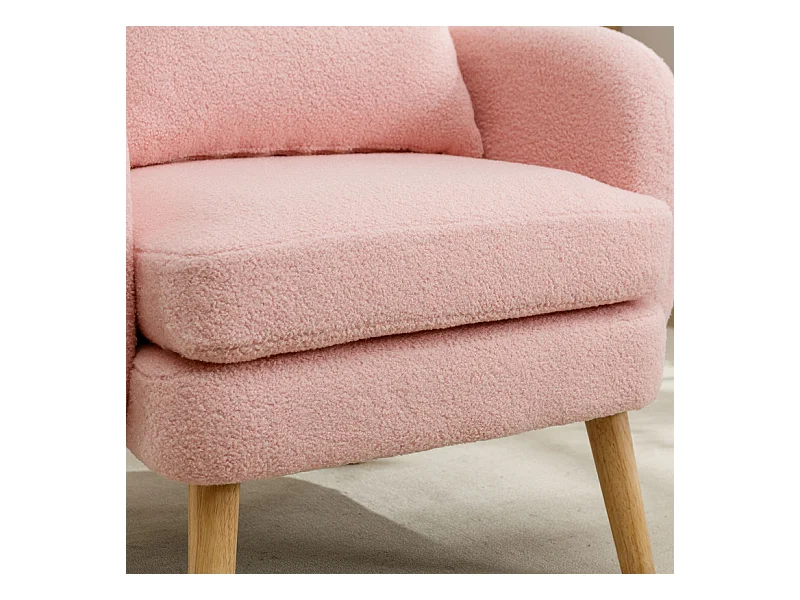 Sessel aus Bouclé-Stoff - mit Kissen - Massivholzfüße - max. Belastung 150kg - 71x72x71cm - Rosa
