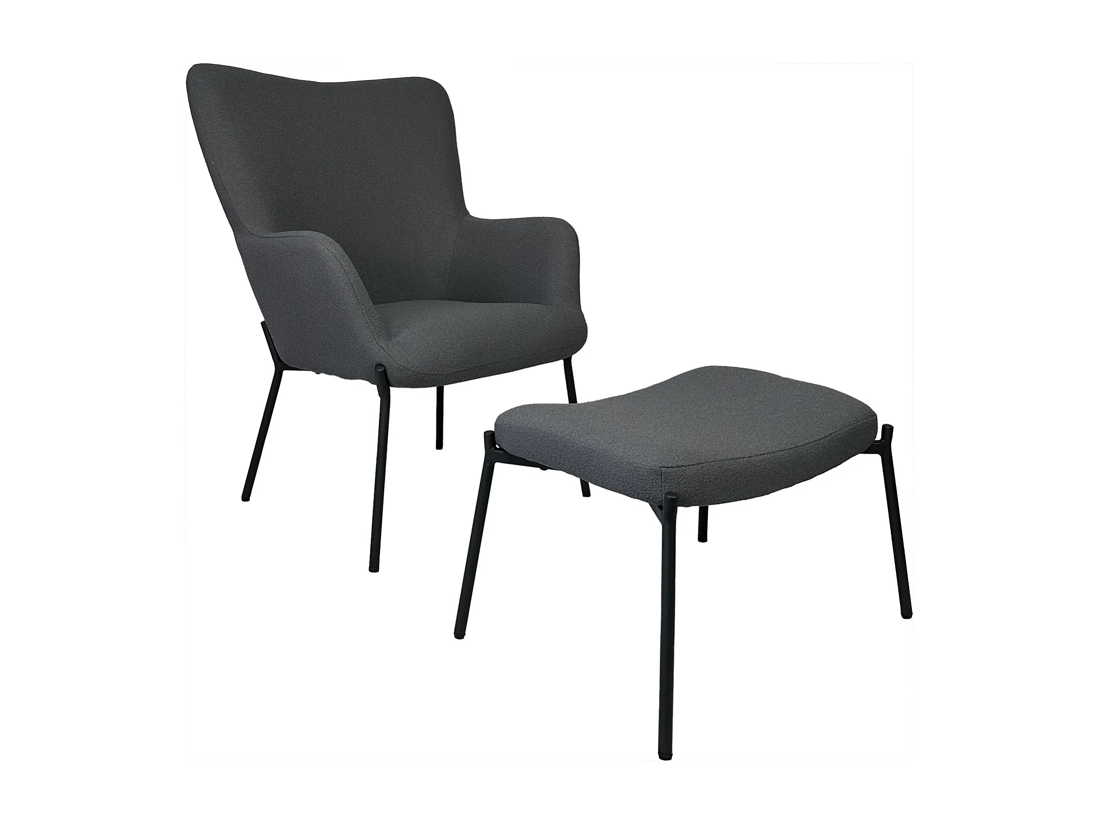 Sessel aus grauem Schlaufenstoff mit Fußstütze EIRA