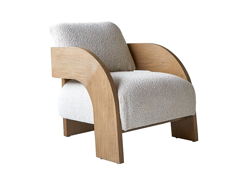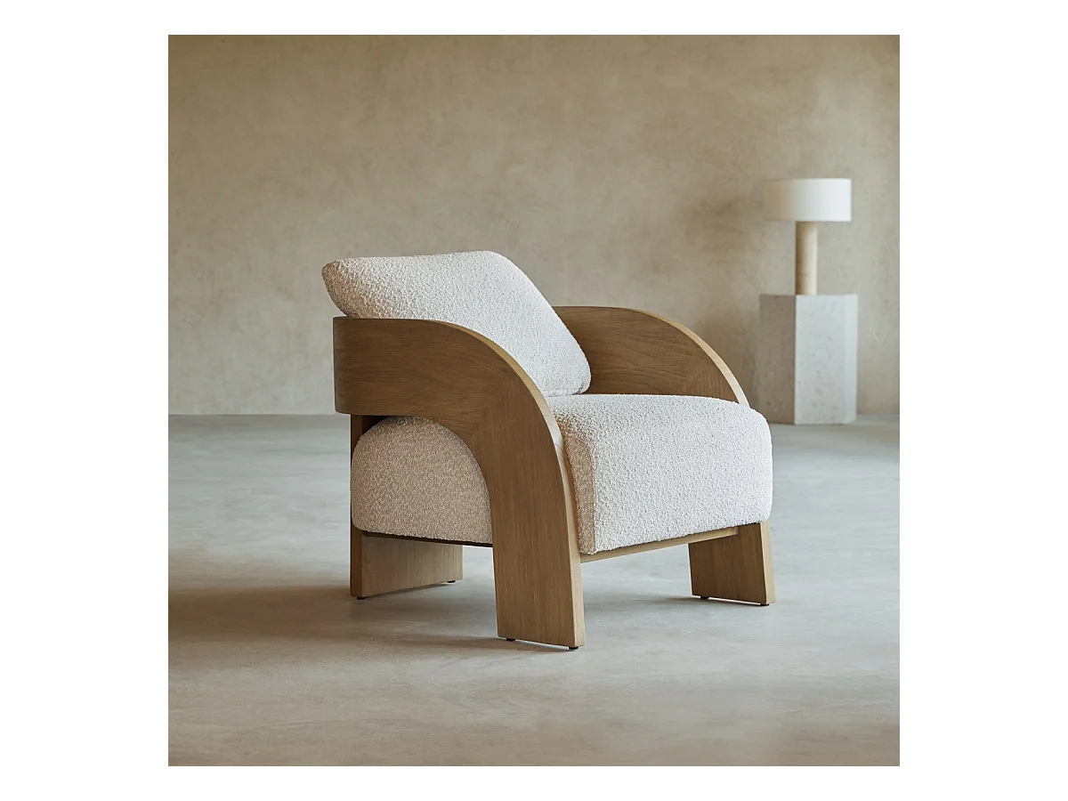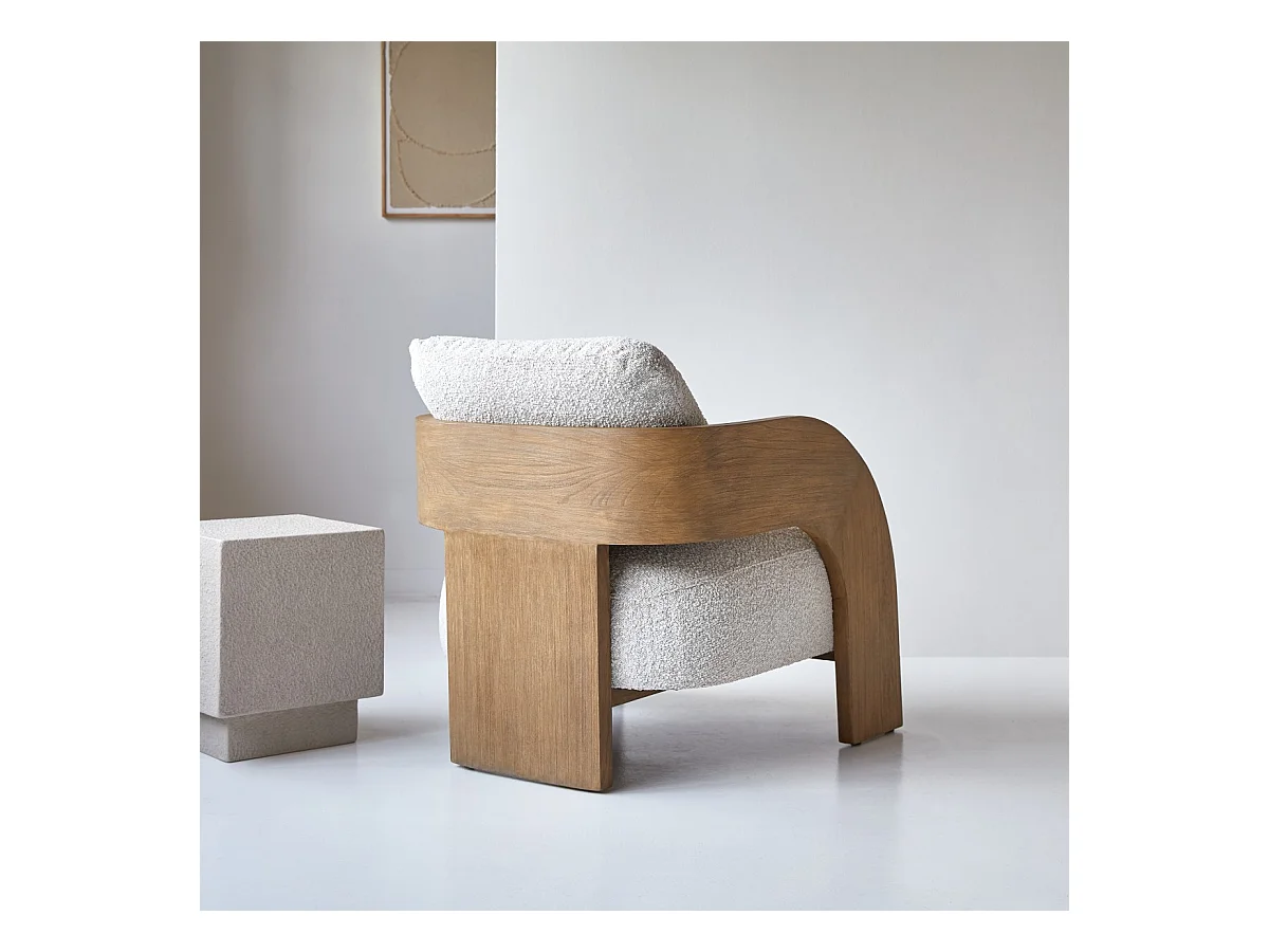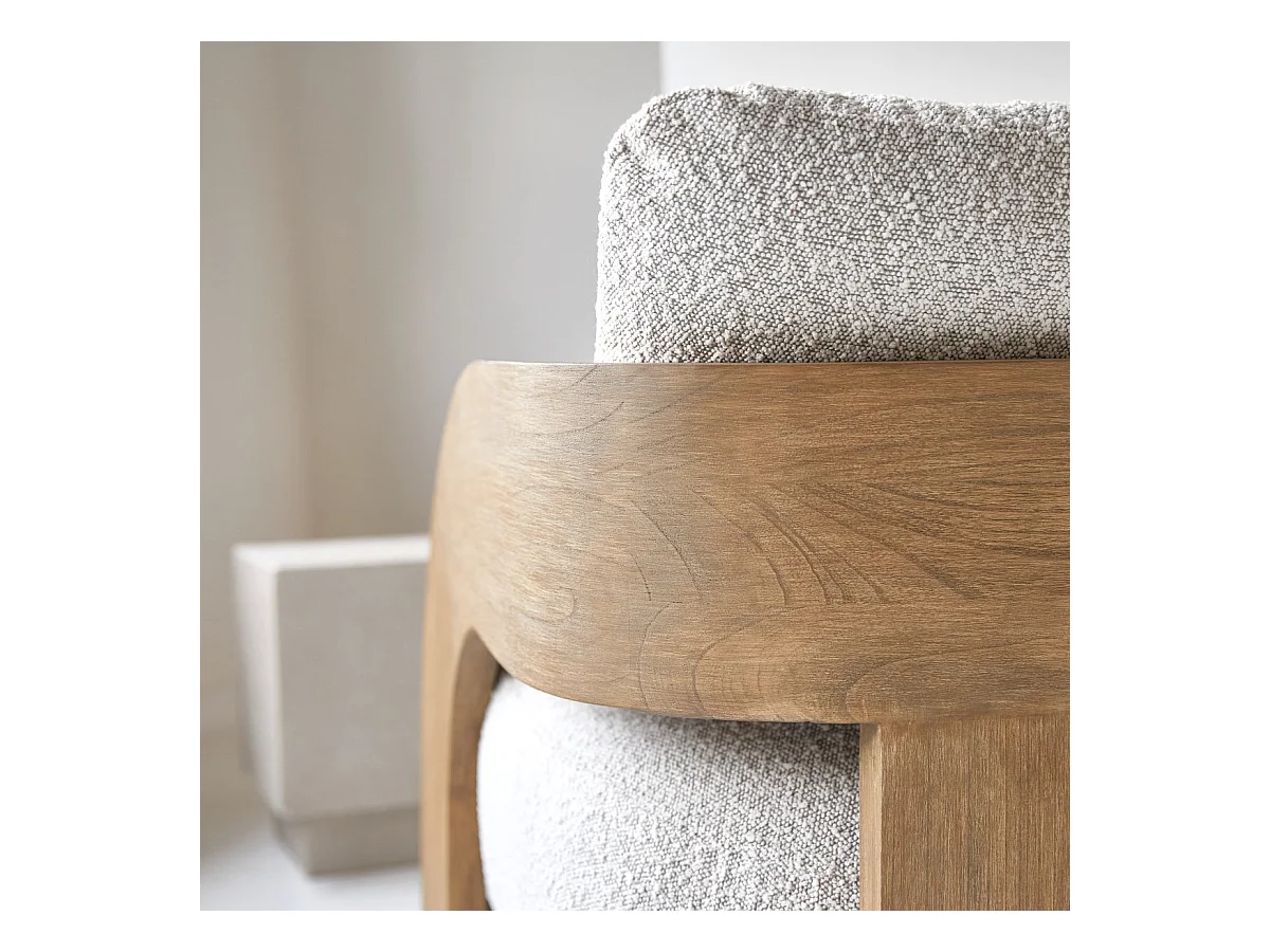 Sessel Boti aus massivem Mindiholz und ecrufarbenem Stoff ,1-Sitz