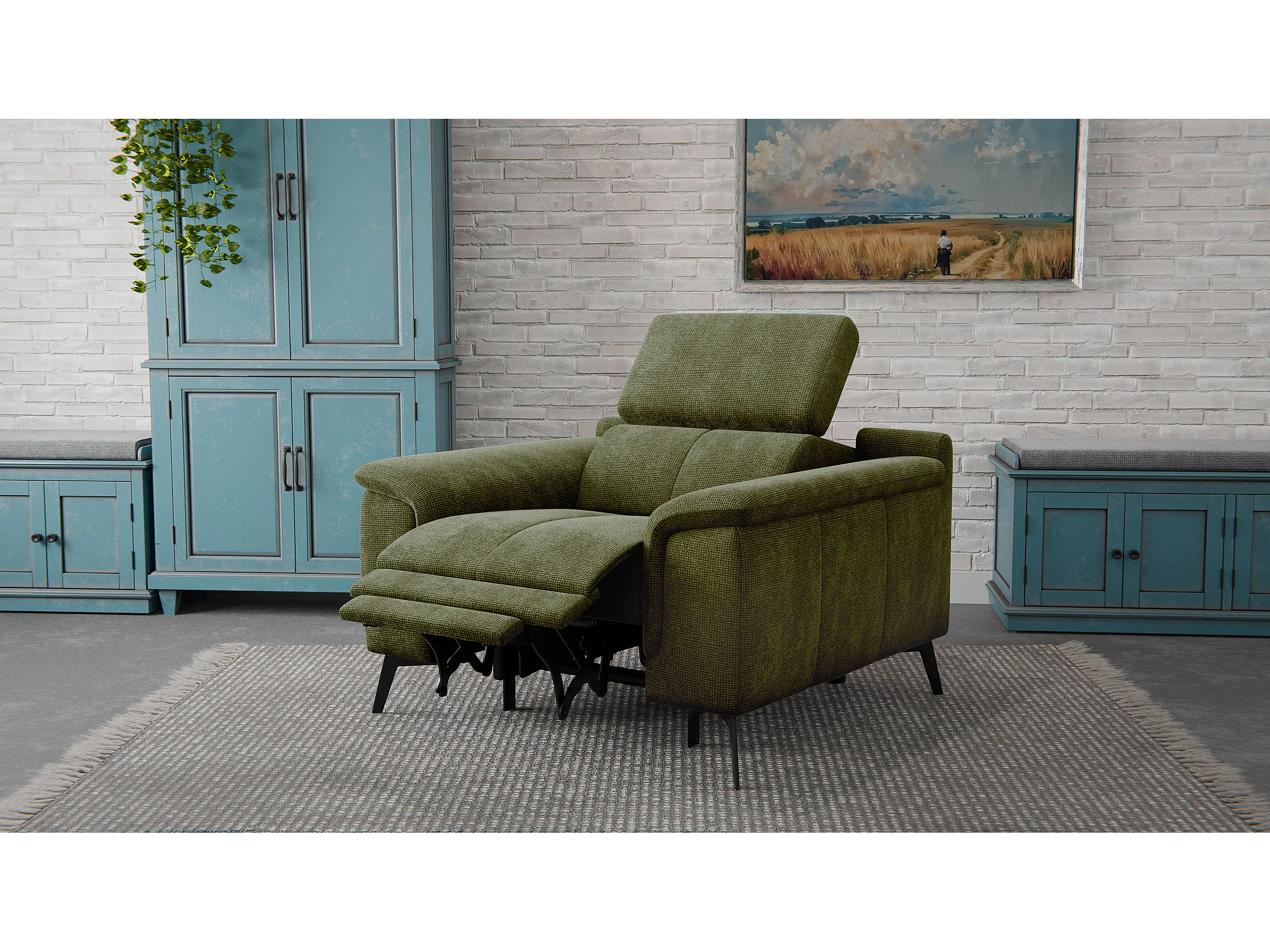 Sessel FIERO mit Relaxfunktion und verstellbare Kopfstützen, olive