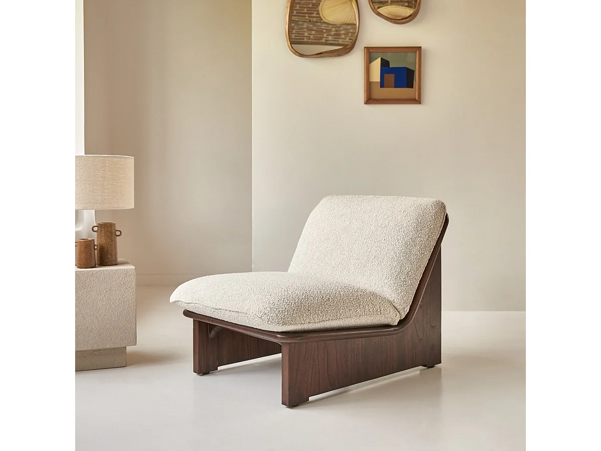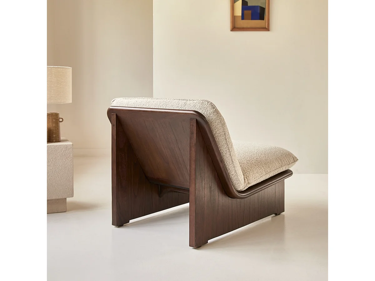 Sessel Folk aus massivem Mindiholz und ecrufarbenem Stoff ,1-Sitz