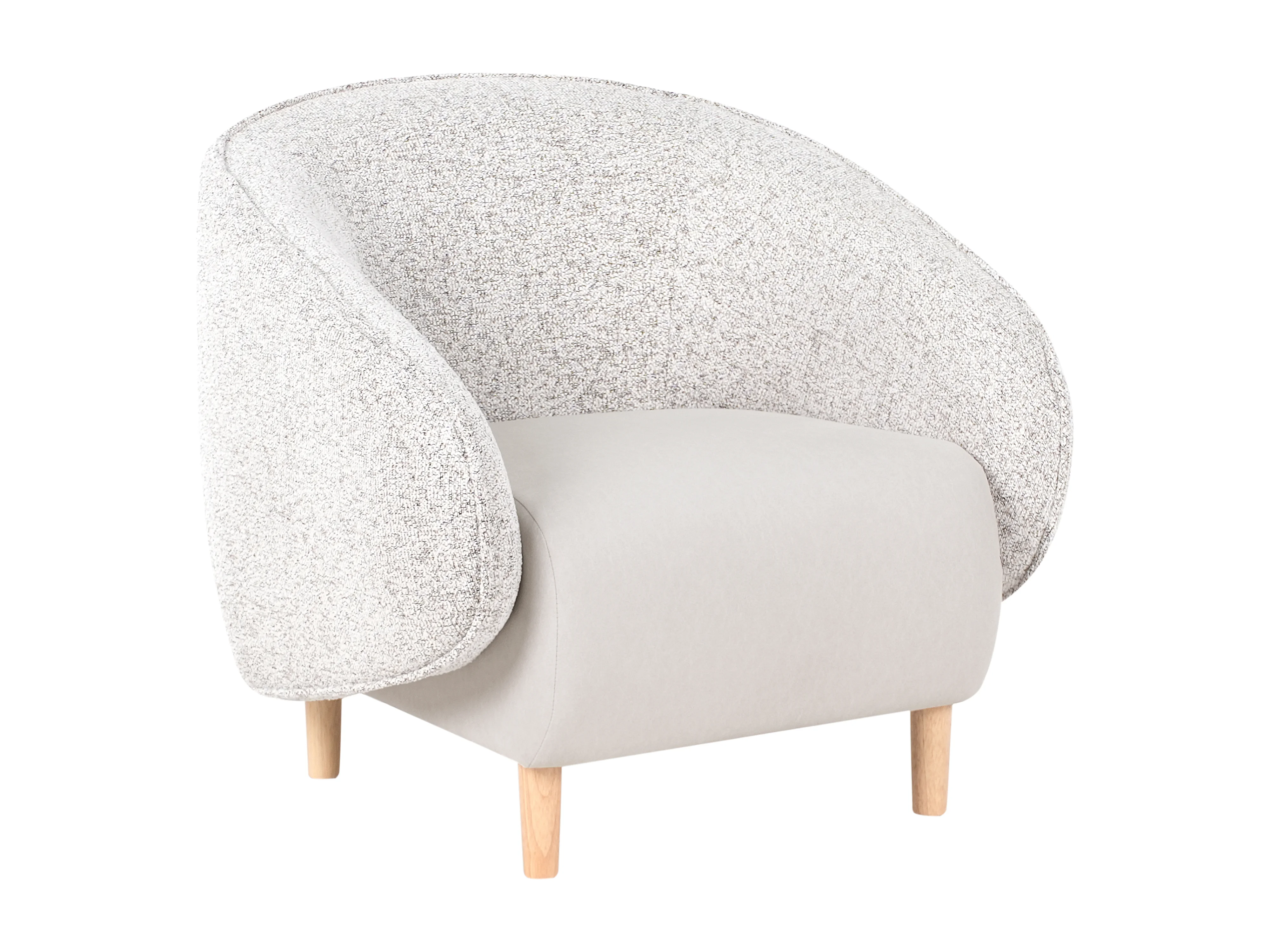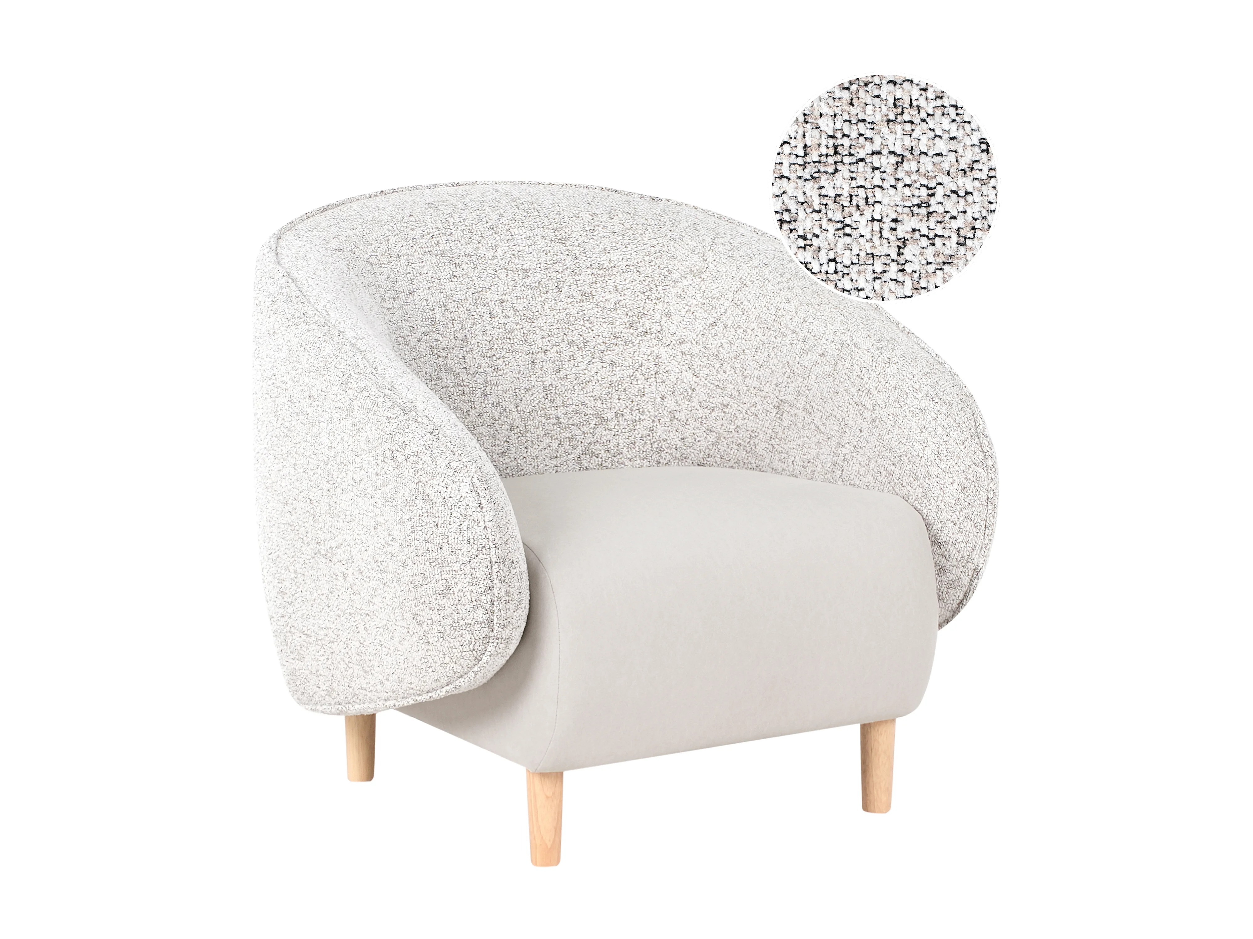 Sessel hellbeige meliert mit abgerundeter Lehne helle Holzbeine Retro Umea