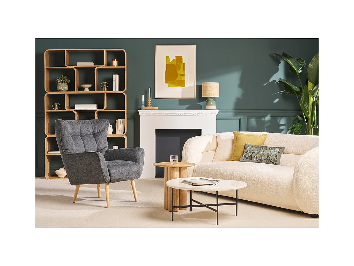 Sessel im dunkelgrauen Samtdesign beige Holzfüße AVERY