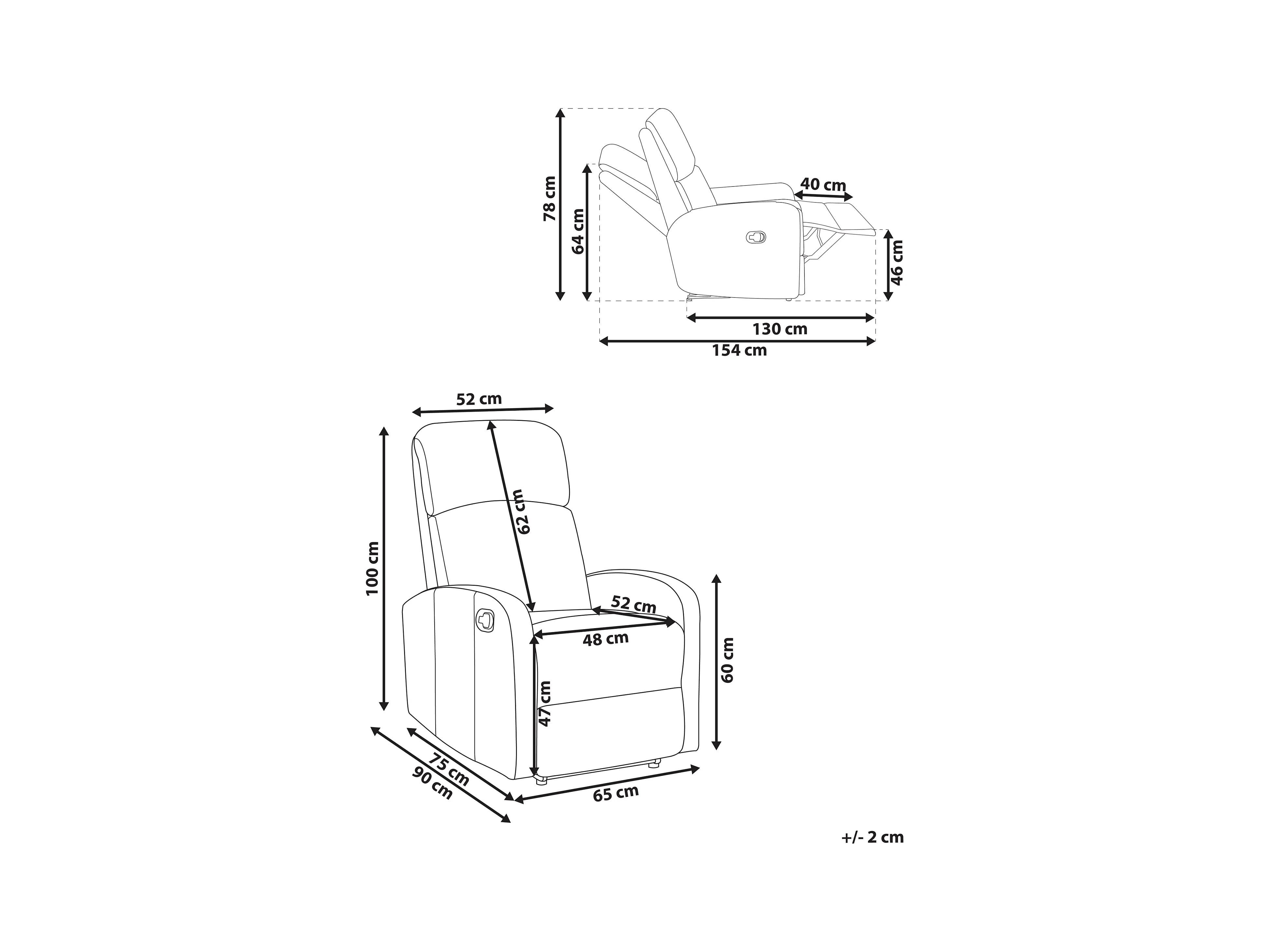 Fernsehsessel Kunstleder weiß mit USB-Port manuell verstellbar modern Virrat