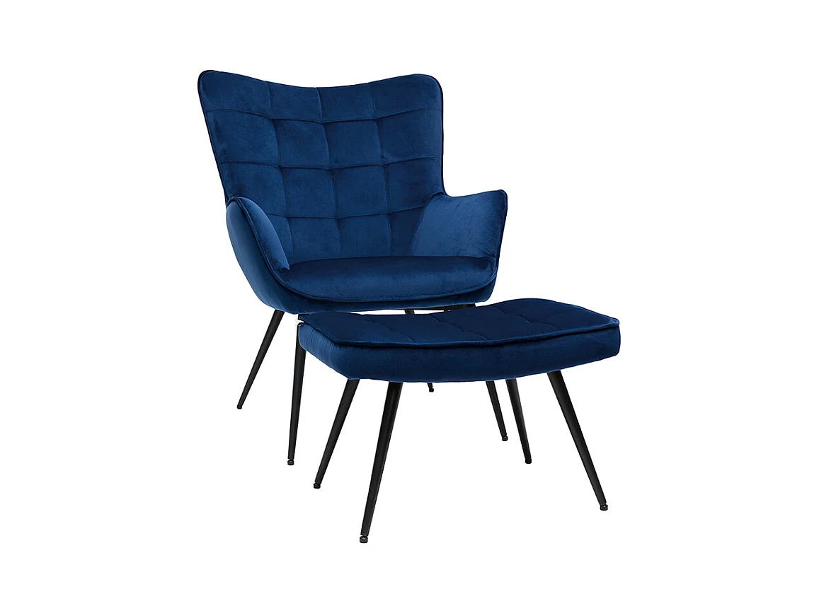 Sessel mit Fußstütze in dunkelblauem Samtstoff und schwarzem Metall MOOD