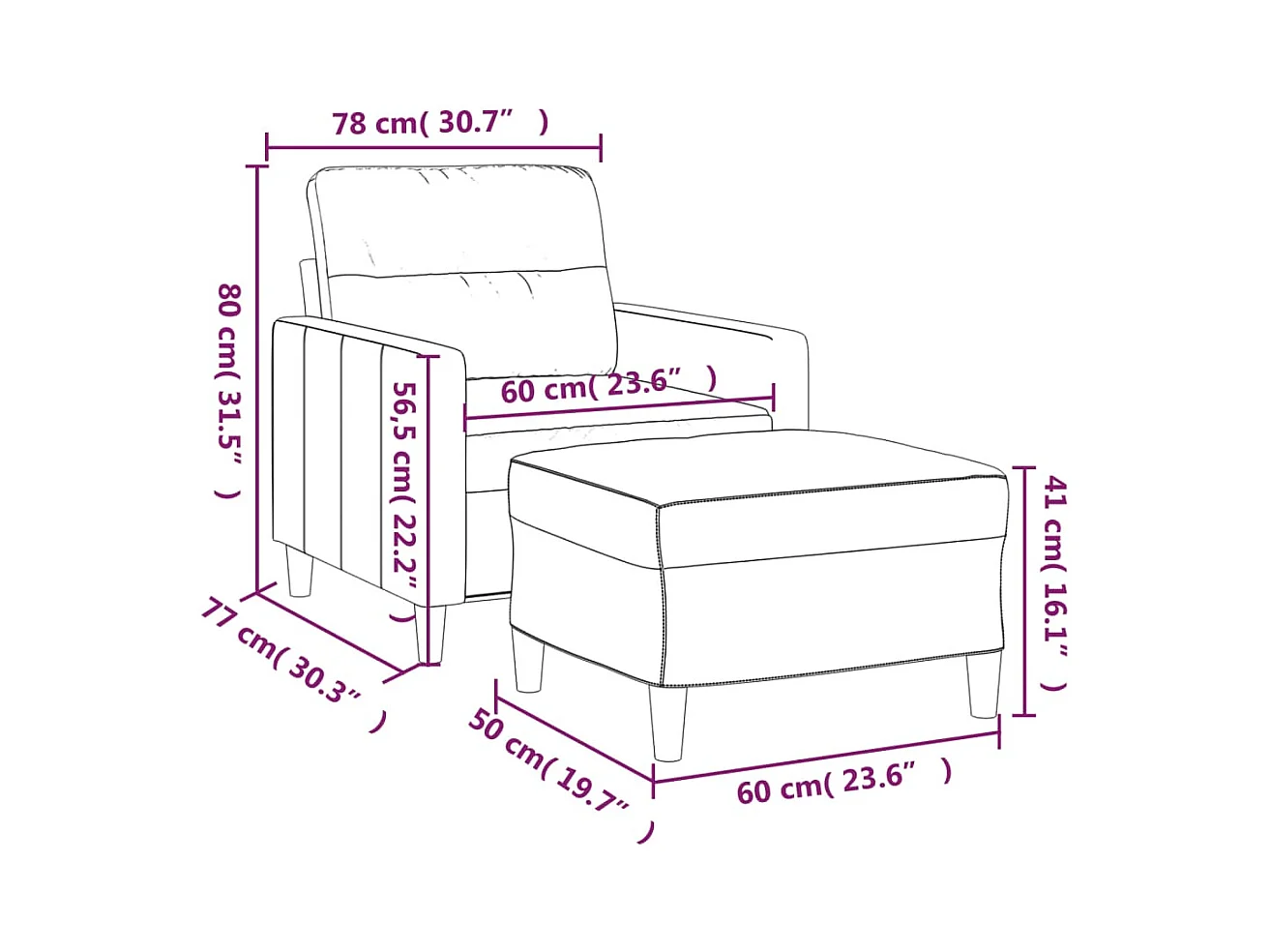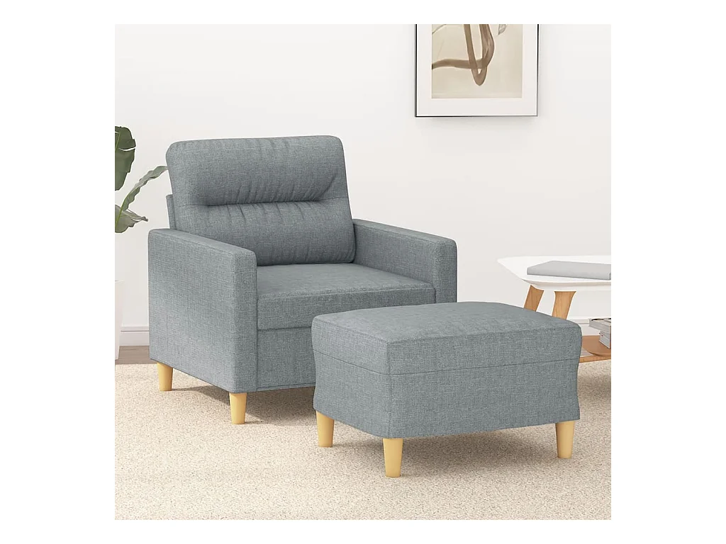 Sessel mit Hocker Hellgrau 60 cm Stoff