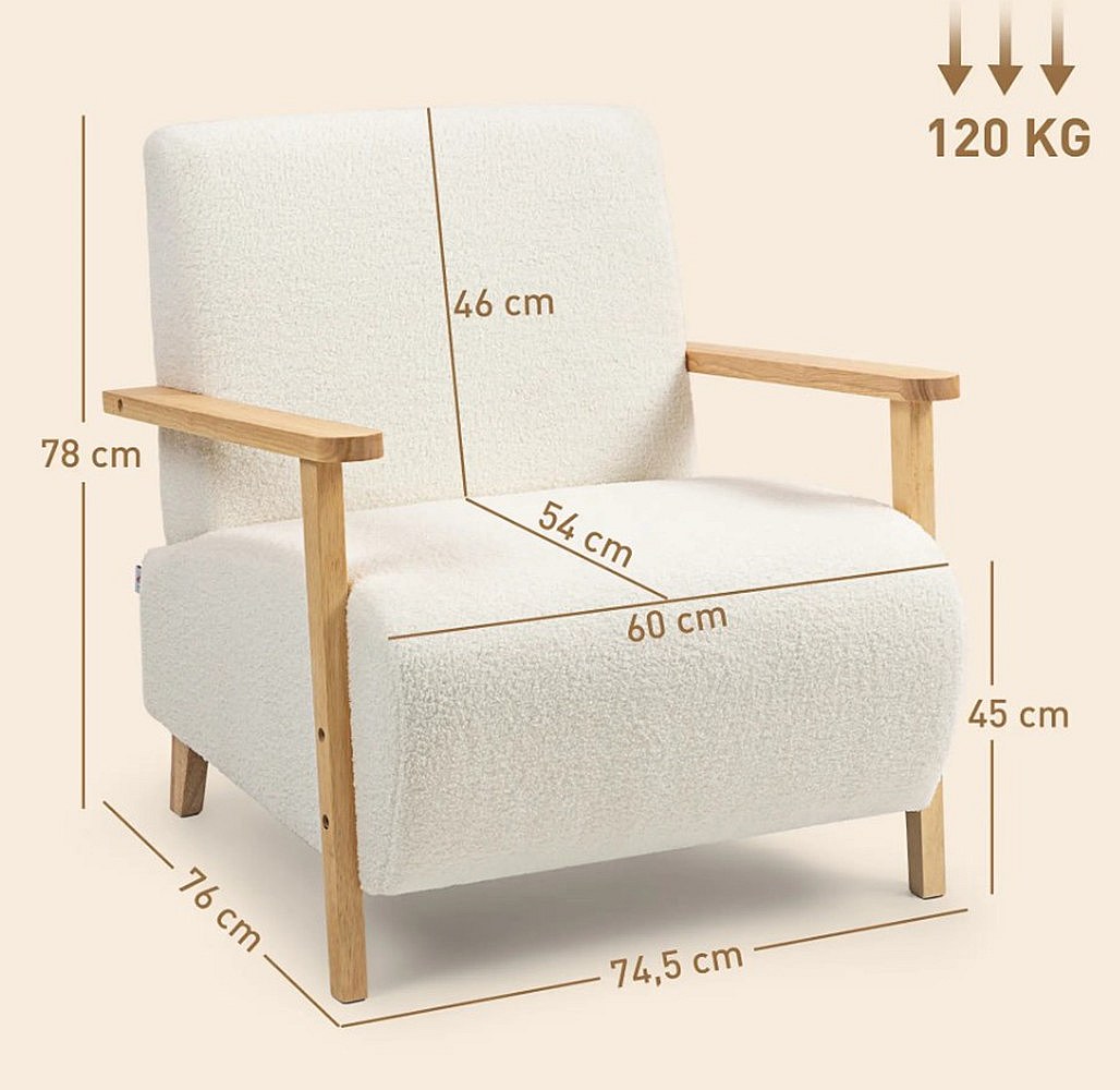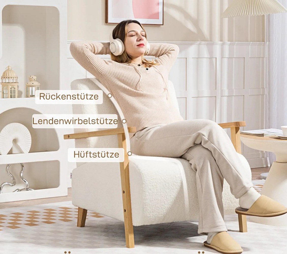 Sessel mit Rückenlehne, Relaxsessel Armlehnen, Gepolstert Loungesessel für Schlafzimmer, Wohnzimmer