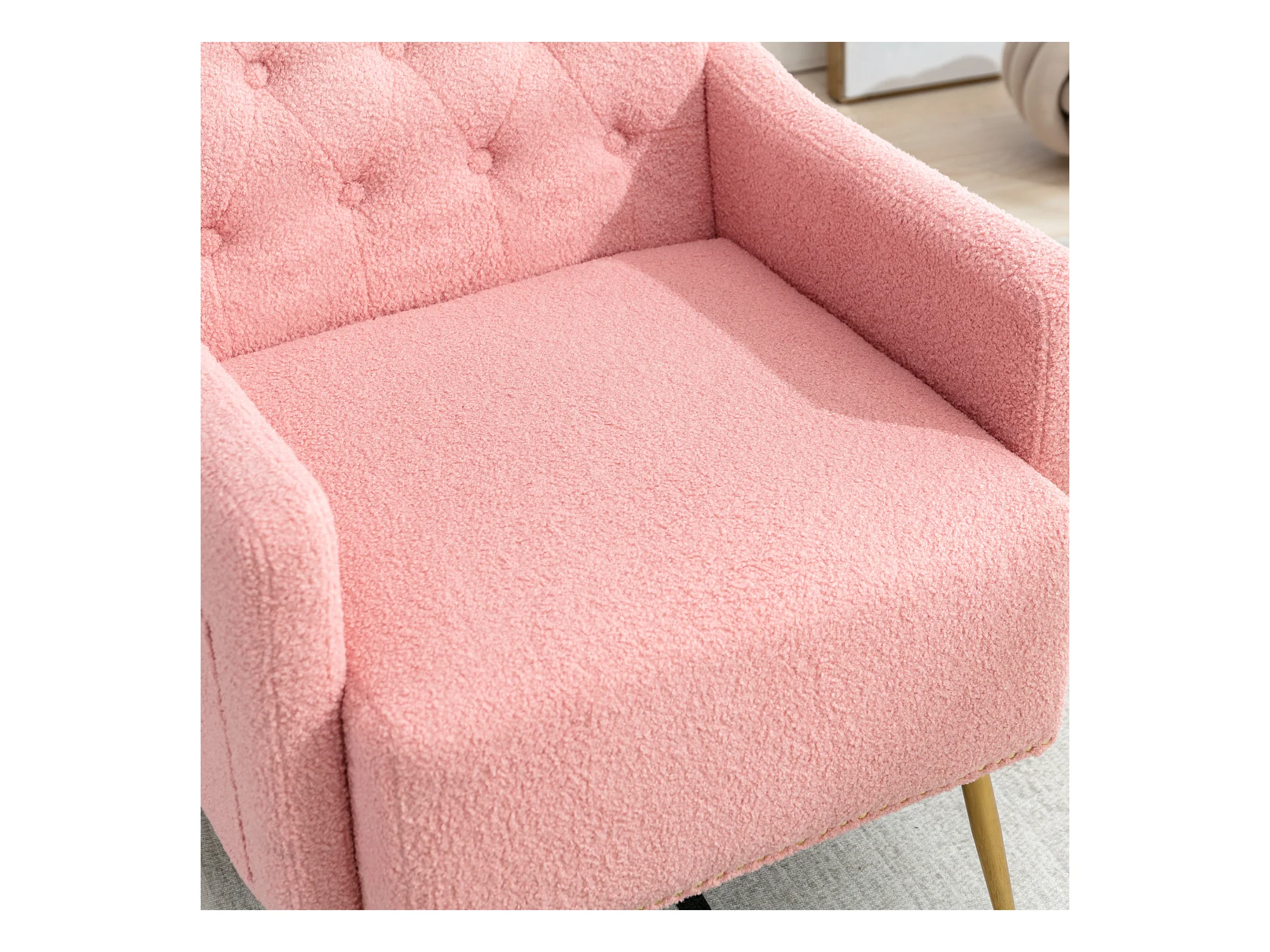 Sessel mit Tasche – goldene Metallbeine – rosa Teddystoff