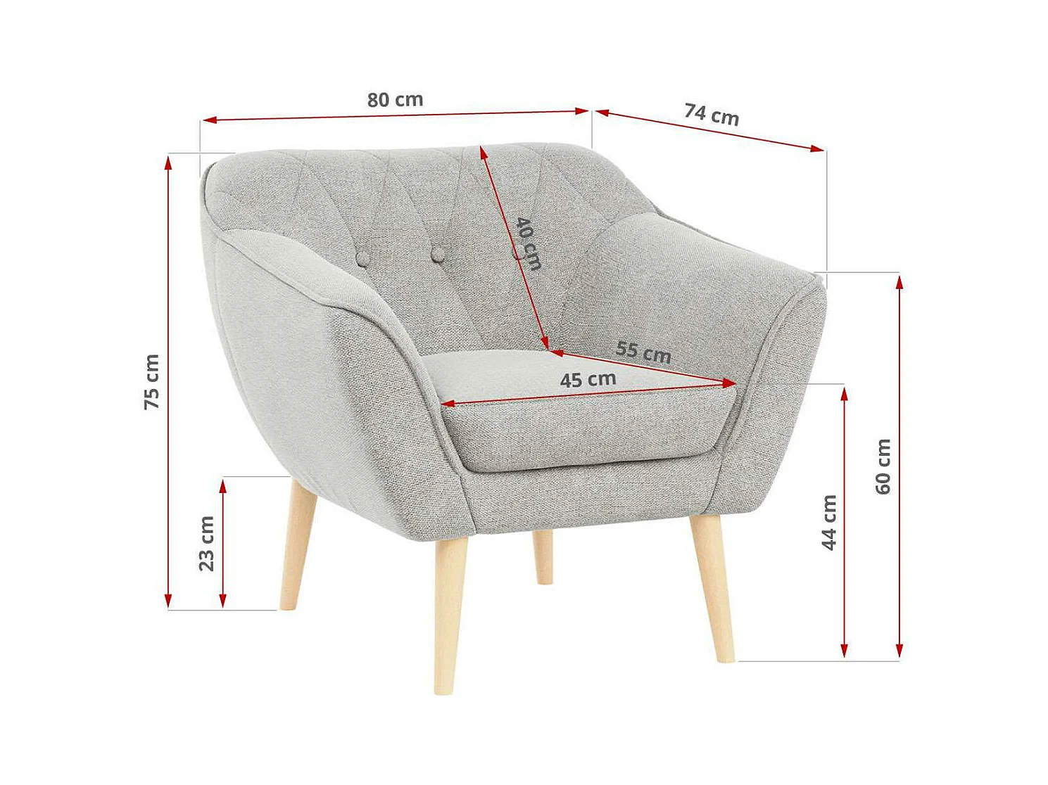 Sessel PIRS - 1-Sitzer, Skandinavisches Design, hoche Holzbeine - Hellgrau Stukture