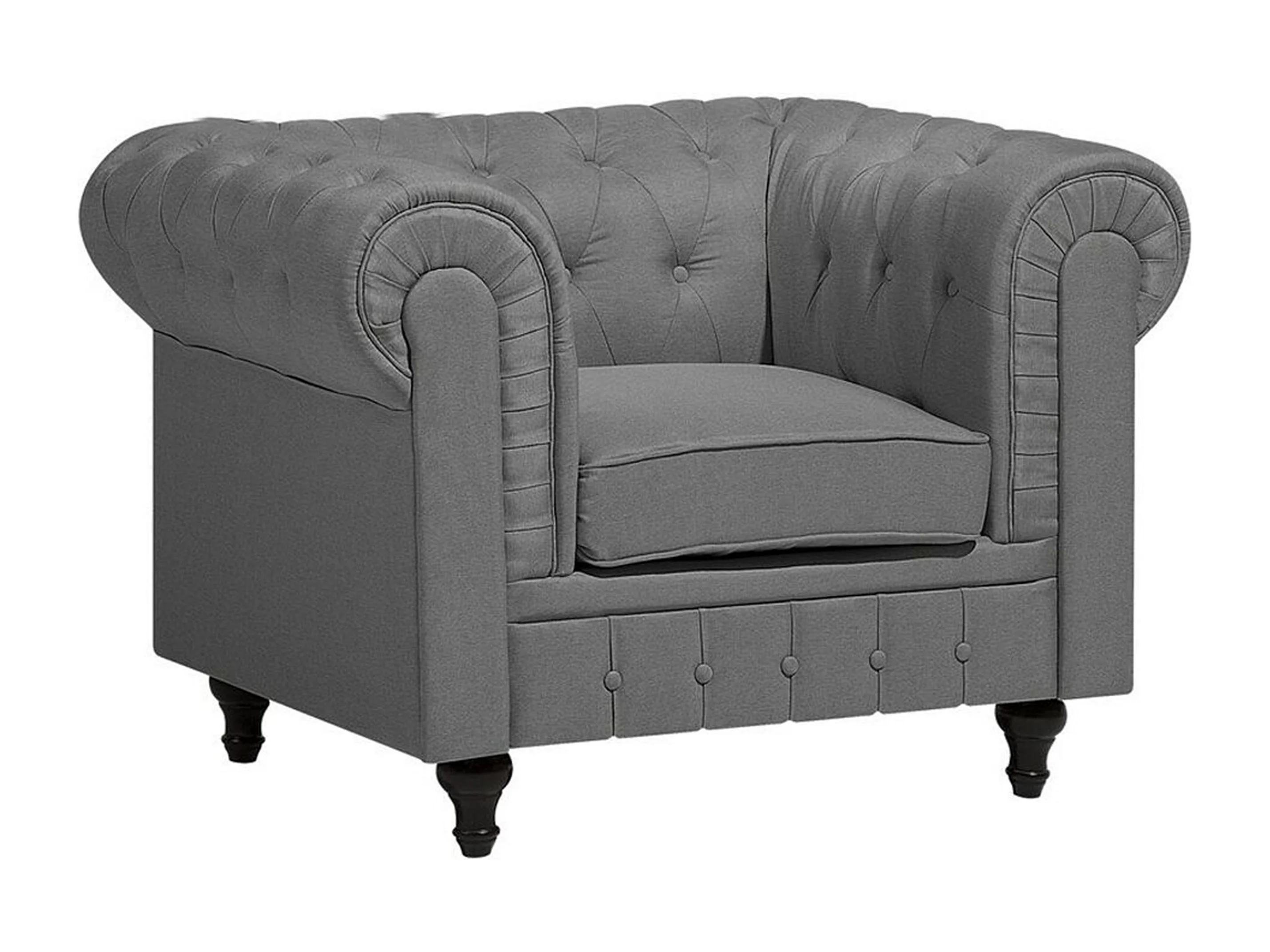 Kassischer Sessel im englischen Stil Polsterbezug Hellgrau Chesterfield Groß