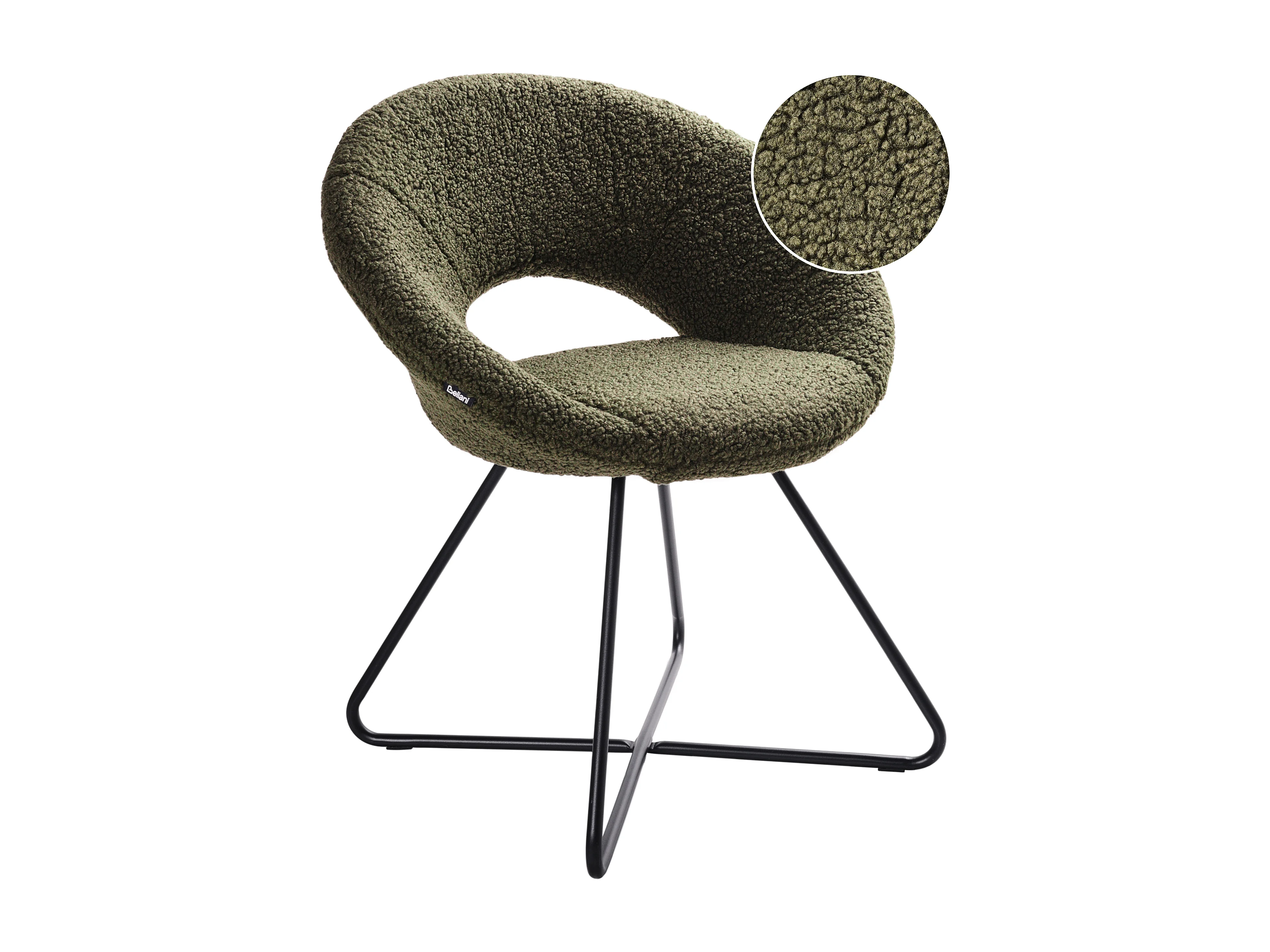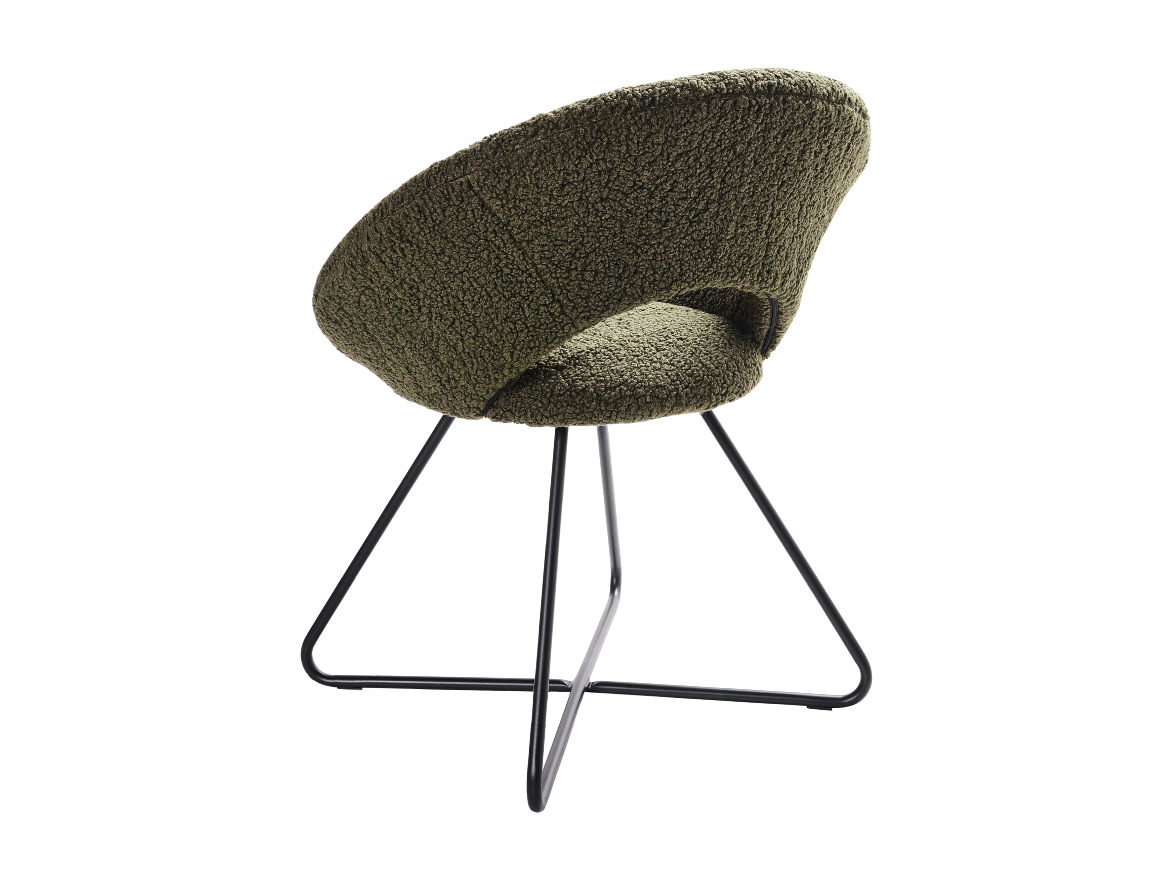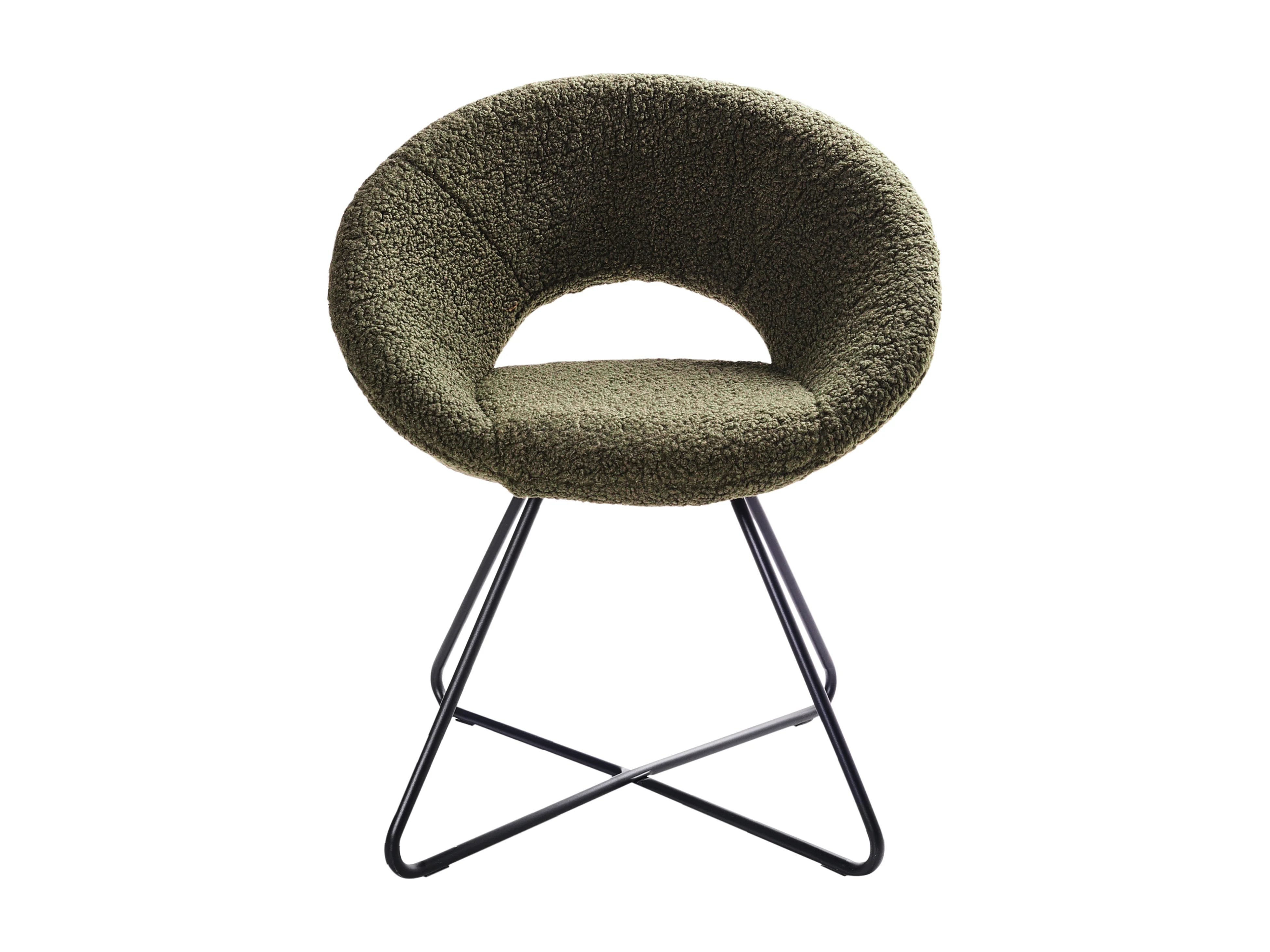 Sessel rund Bouclé grün mit schwarzem Metallgestell Kufen Glamourös Retro Rachel