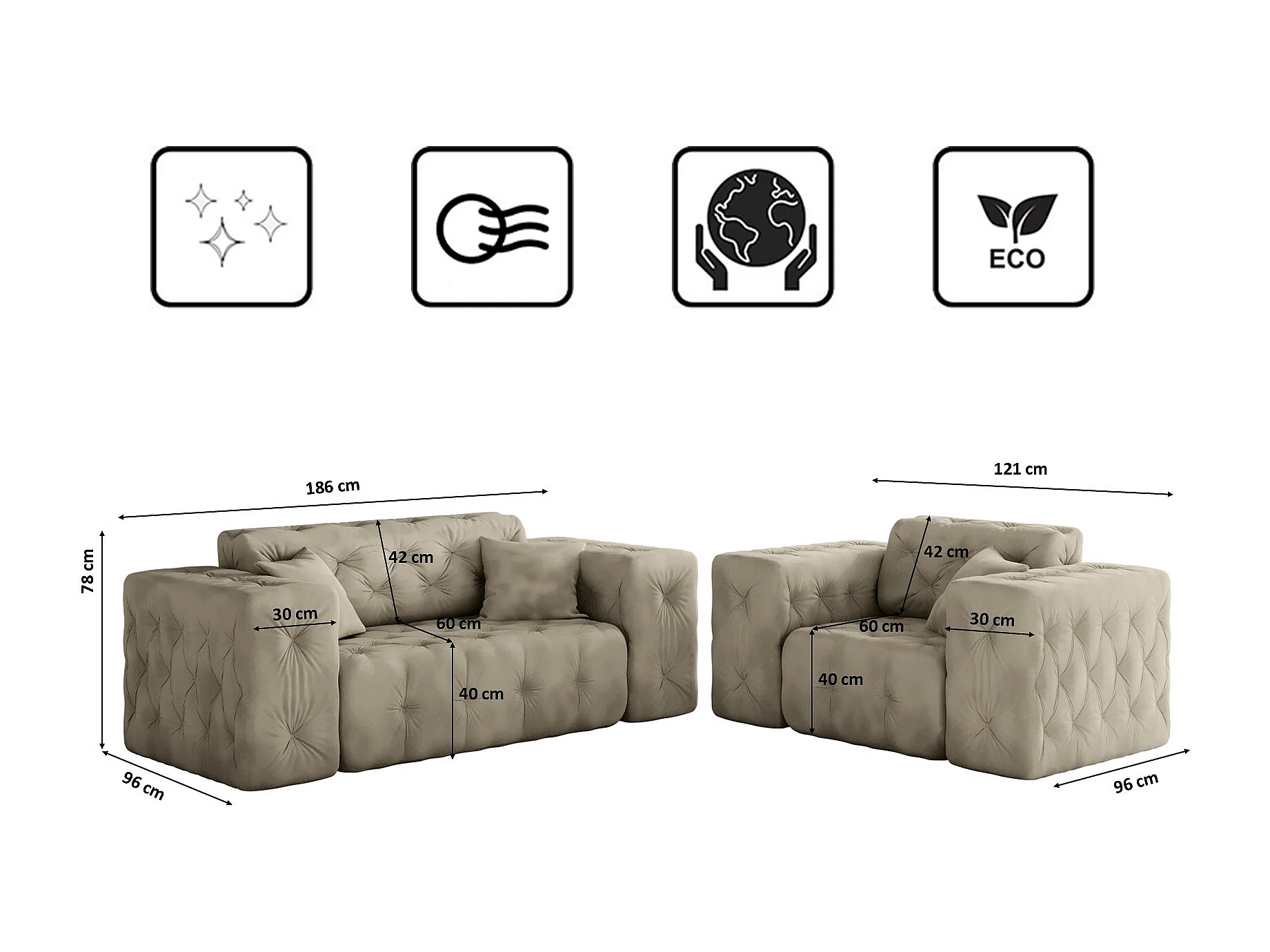 Set 2+1+1 LUX, Stoff Whisper, Creme